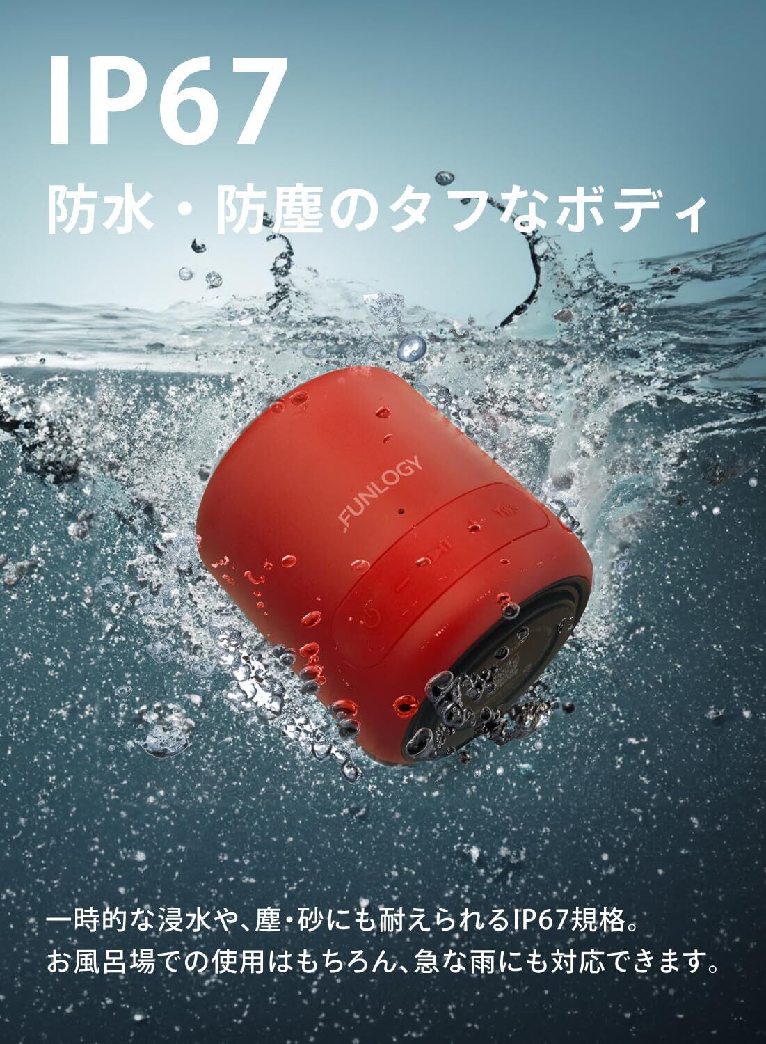 FUNLOGY Portable Mini(スピーカー/ポータブルスピーカー)【VGP2024受賞 / 防水対応/小型/Type-C 充電式/バッテリー 内臓/Bluetooth対応/ワイヤレス / IP67 お風呂 で使える/pc スマホ 接続OK/TWS 対応/日本ブランド/レッド】 | hananoki