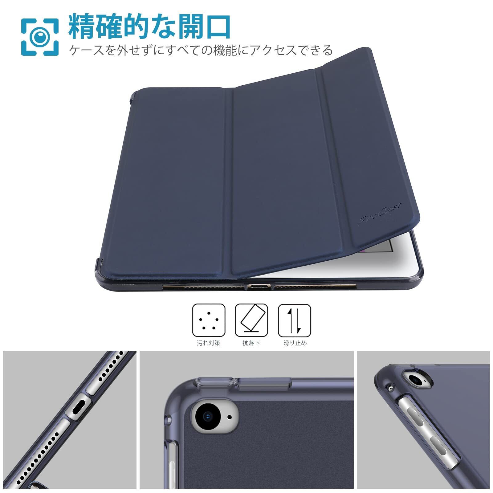 ProCase iPad 9.7 ケース 6世代 2018/ 5世代 2017, iPad Air 2 1 保護カバー, 3つ折り スマートケース TPUバックカバー スタンド機能 - ネービー | hananoki
