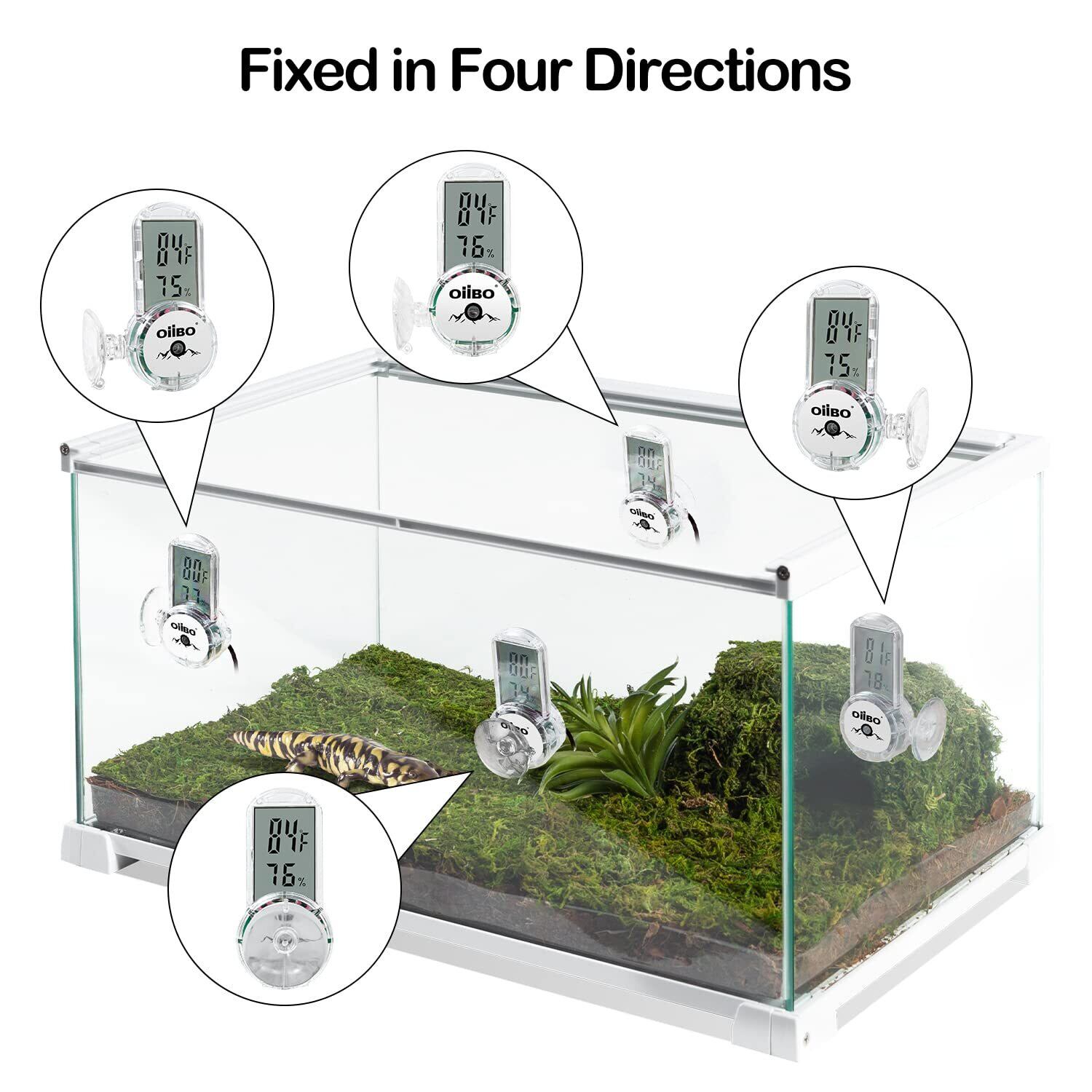 爬虫類 温度計 湿度計 デジタル温湿度計 4面設置 LCDディスプレイ 高精度 温湿度管理 吸盤付き 爬虫類 両生類用 デジタル サーモメーター 温湿度計