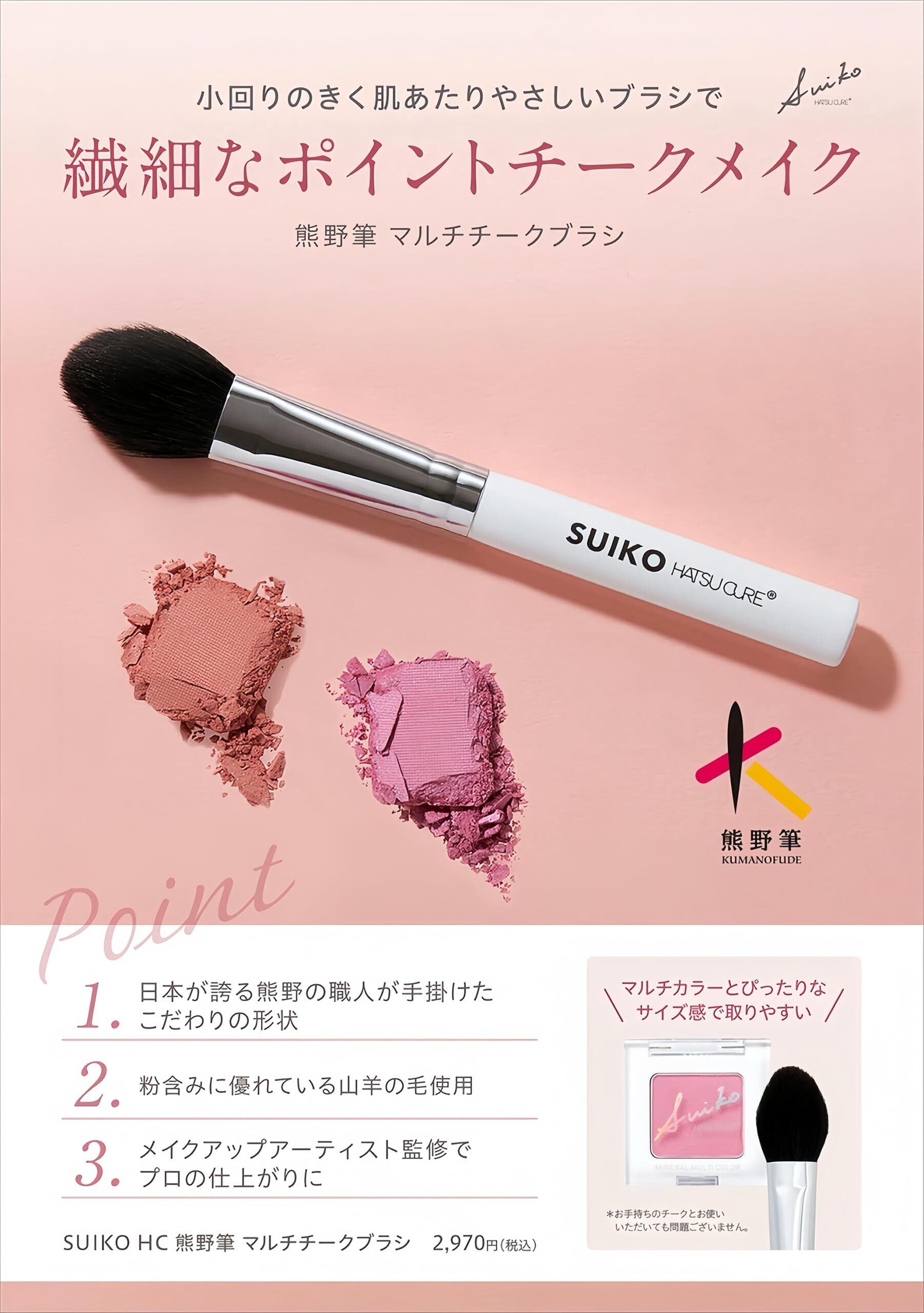 SUIKO 熊野筆マルチチークブラシ 山羊毛 多機能パウダーブラシ フェイスブラシ 輪郭ブラシ ハイライトブラシ メイクブラシ 化粧ブラシ メイク筆