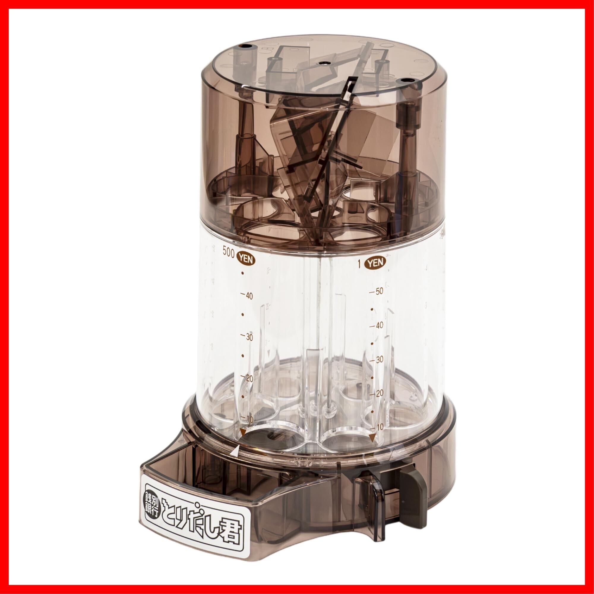 500円玉から1円玉まですべてのコインを自動選別する貯金箱。貯めると同時に、必要なコインを1枚ずつ取り出すことができる取り出しレバー付き。各種類のコインをそれぞれ40枚程度貯めることができる。