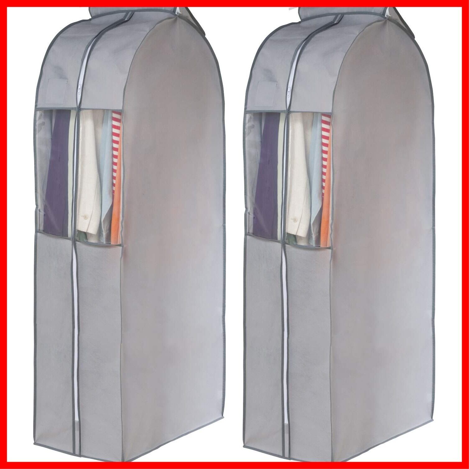 アストロ 衣類カバー グレー マチ付き ワイド ロングサイズ 2枚組 ジャケット ロングコート ワンピース ドレス 保管 洋服カバー 不織布 衣装カバー スーツカバー クローゼット 吊り下げ収納 透明窓 防虫剤ポケット付き 底閉じタイプ まとめて収納 167-08