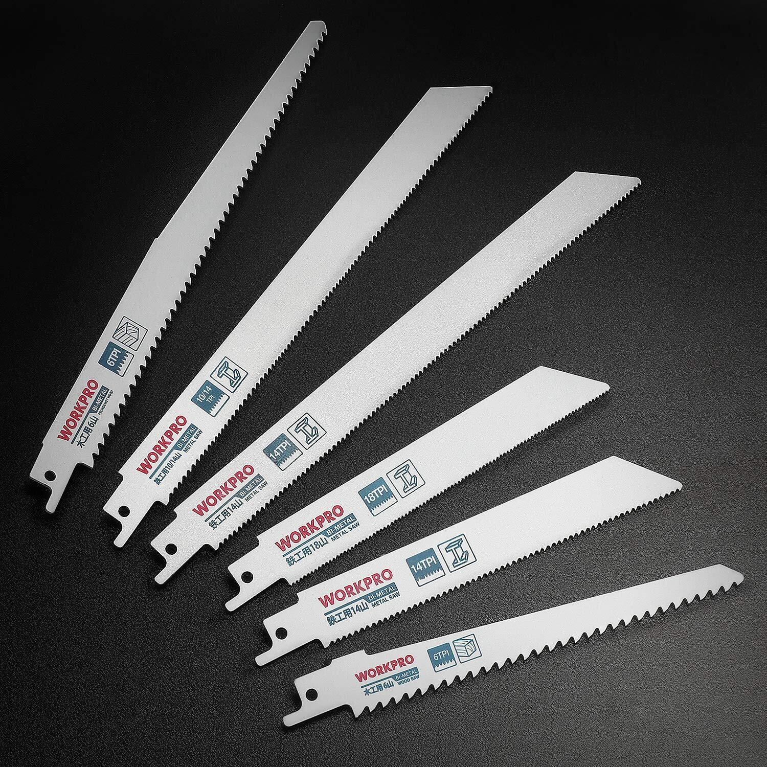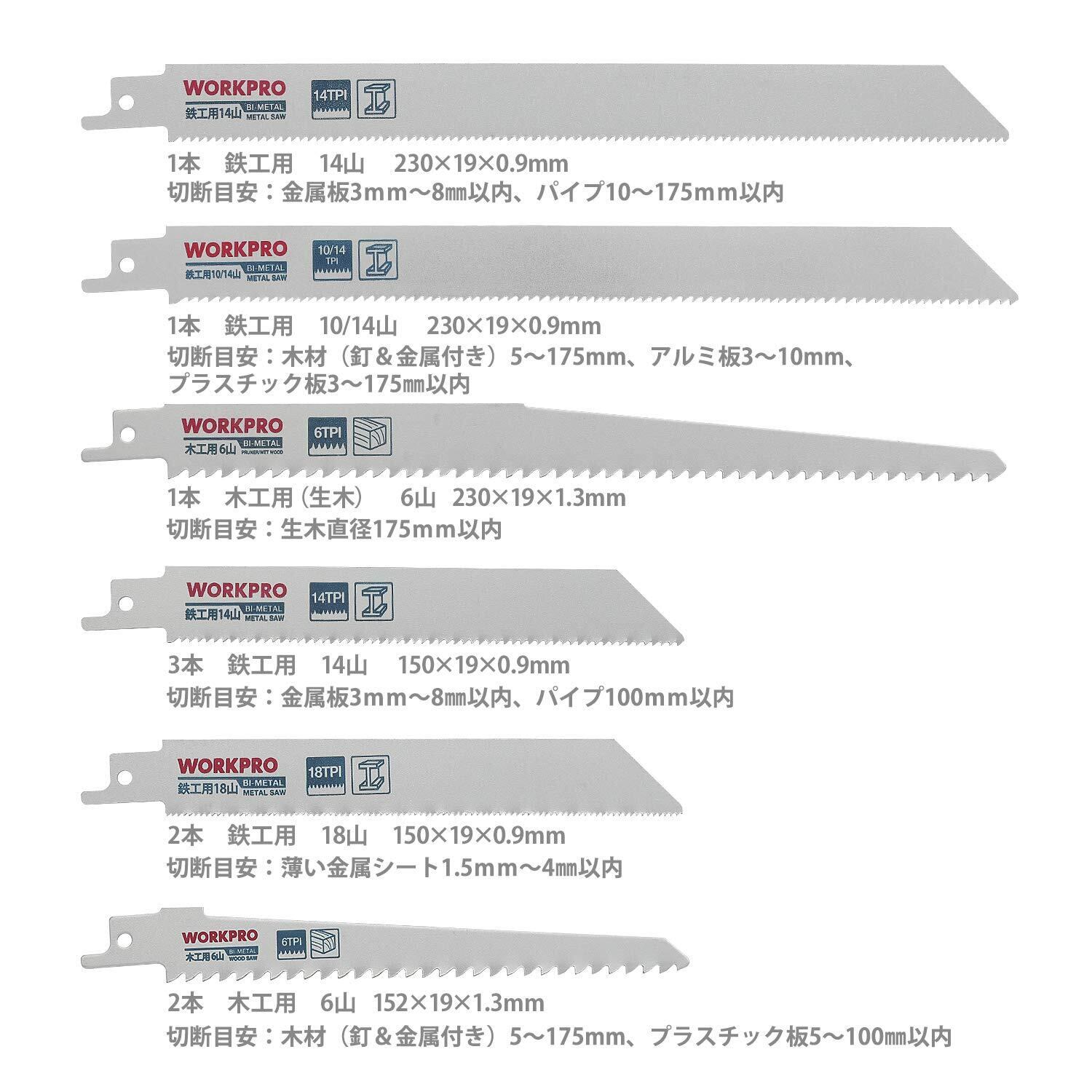 WORKPRO レシプロソー替刃 電気のこぎり替え刃 鉄工・木工用 金属 ステンレス 非鉄金属 プラスチックパイプ 収納ケース付き 10点组