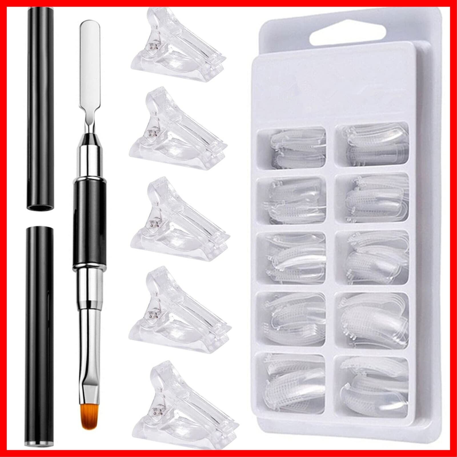 完璧なネイルツールセット ネイルアート 透明フェイクネイルモールド*100枚&透明 ネイルチップクリップ*5個&ポリジェル 筆*1個 て 初心者に適しています