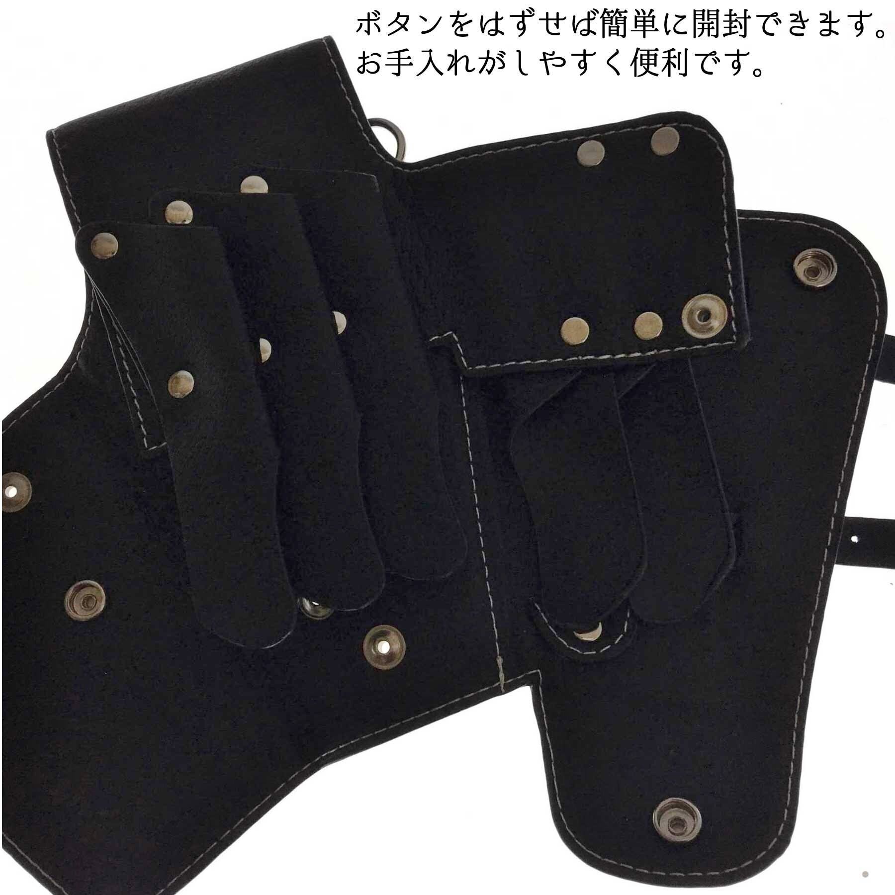 ボタンをはずして、シザーケースを開くことが出来るので、清掃しやすくシザーケースを清潔に保ちます。また汚れてしまっても水拭き可能です。