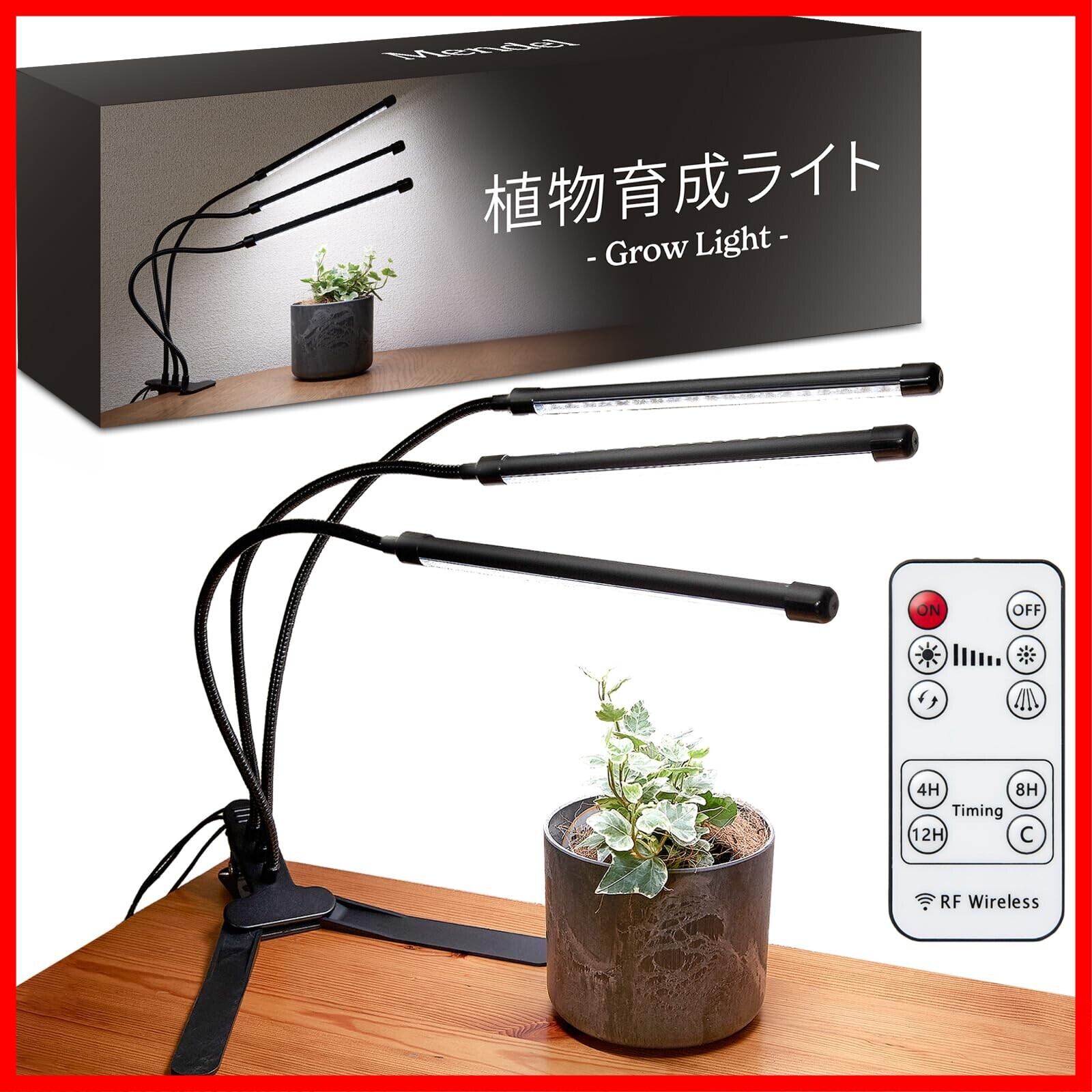 【植物育成をもっと便利に】●リモコン操作可能:12メートル以内の距離から操作可能。●記憶式タイマー:4H・8H・12Hの3モード。最初の点灯時刻に毎日自動点灯。●10段階調光:1〜10段階まで調光可能。●点灯本数切り替え:1・2・3本と点灯本数の切り替えが可能。