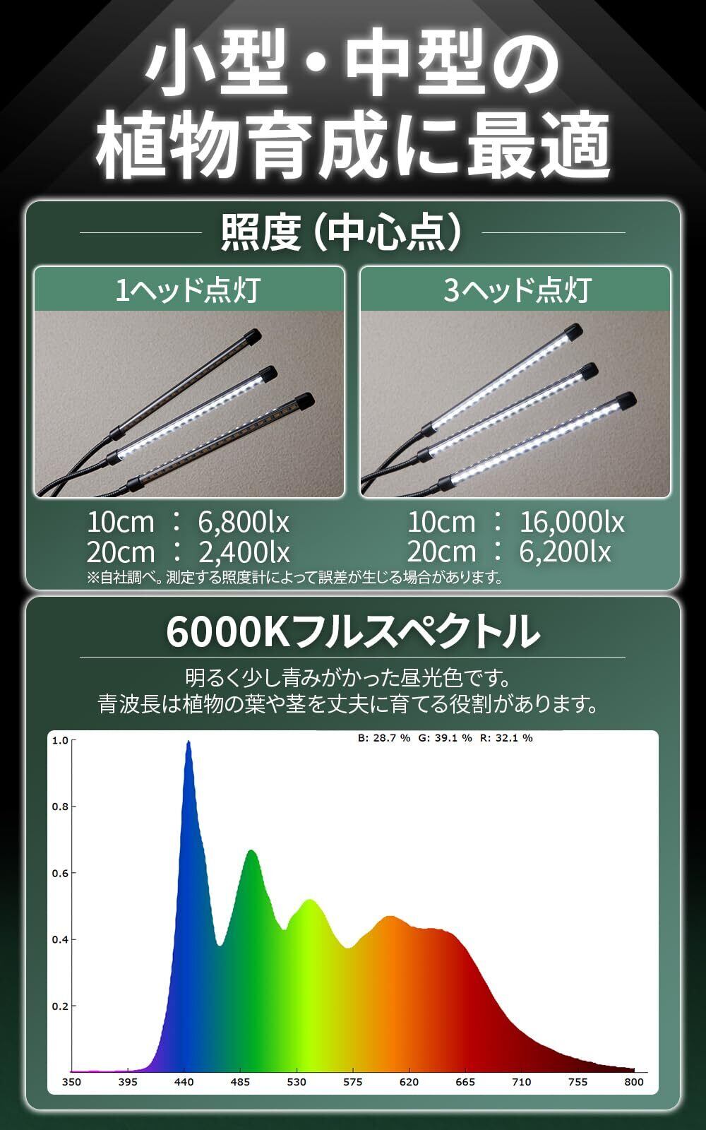 植物育成ライト LED スタンド リモコン タイマー付き 育成ライト 植物 観葉植物 ライト 植物用ライト フルスペクトル 6000K 3ヘッド