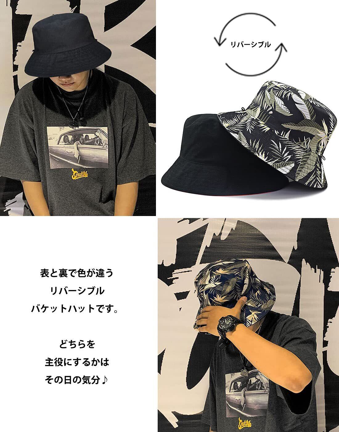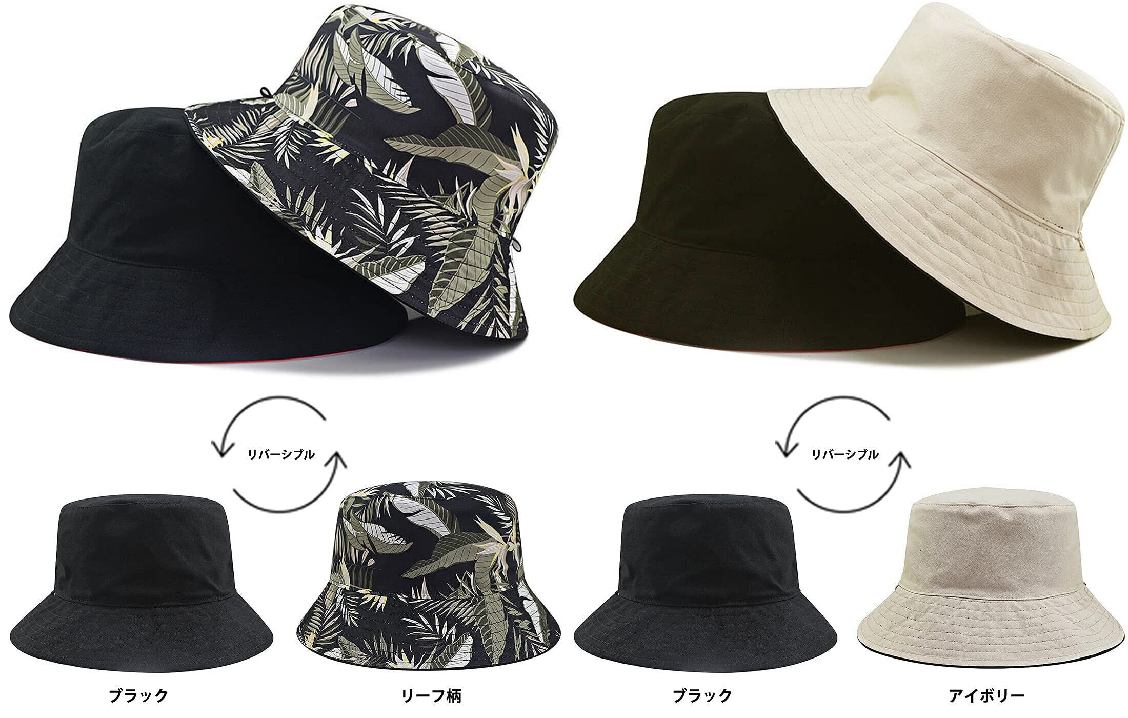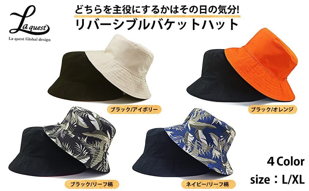 [Laquest] (ラクエスト) 大きいサイズ リバーシブル バケットハット あご紐付き メンズ/レディース バケハ コットン