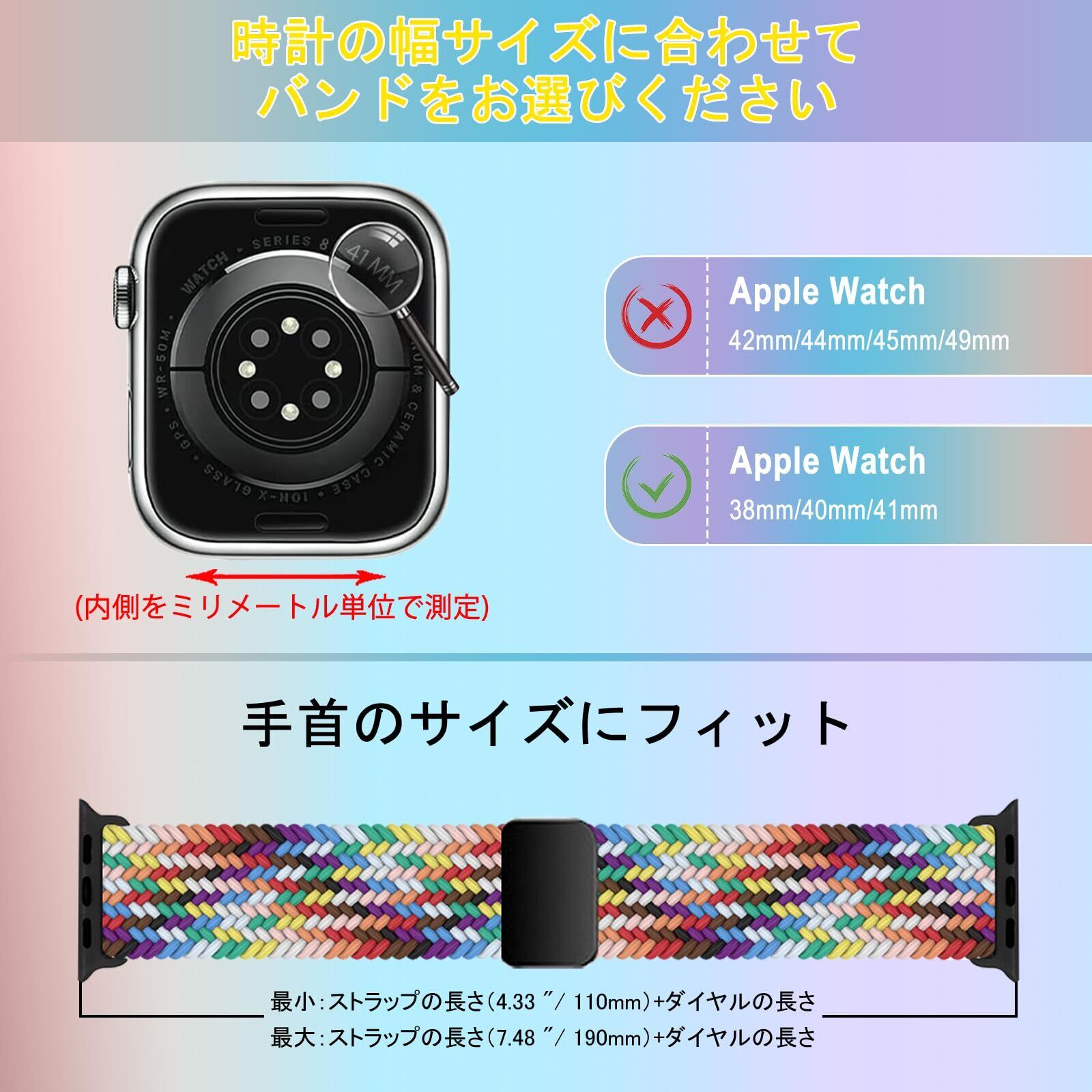 CeiBand バンド Apple Watch 41/40/38mm 用 交換ベルト 編み 腕時計バンド Apple Watch Series 9 41mm 対応 弾力性 ベルト ナイロン 編み込み 磁気吸着式バックル スポーツバンド メンズ レディース 時計バンド スマートウォッチバンド iWatch SE/SE 2/Series 10/9/8/7/6/5/4/3/2/1 -(レインボーカラー) | hananoki