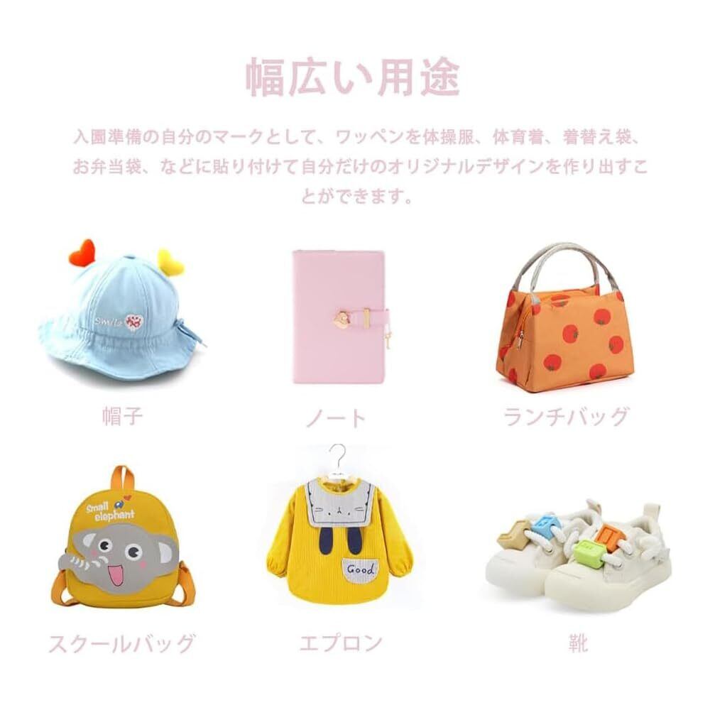 【幅広い用途】入園準備の自分のマークとして、ワッペンを体操服、体育着、着替え袋、お弁当袋、などに貼り付けて自分だけのオリジナルデザインを作り出すことができます。