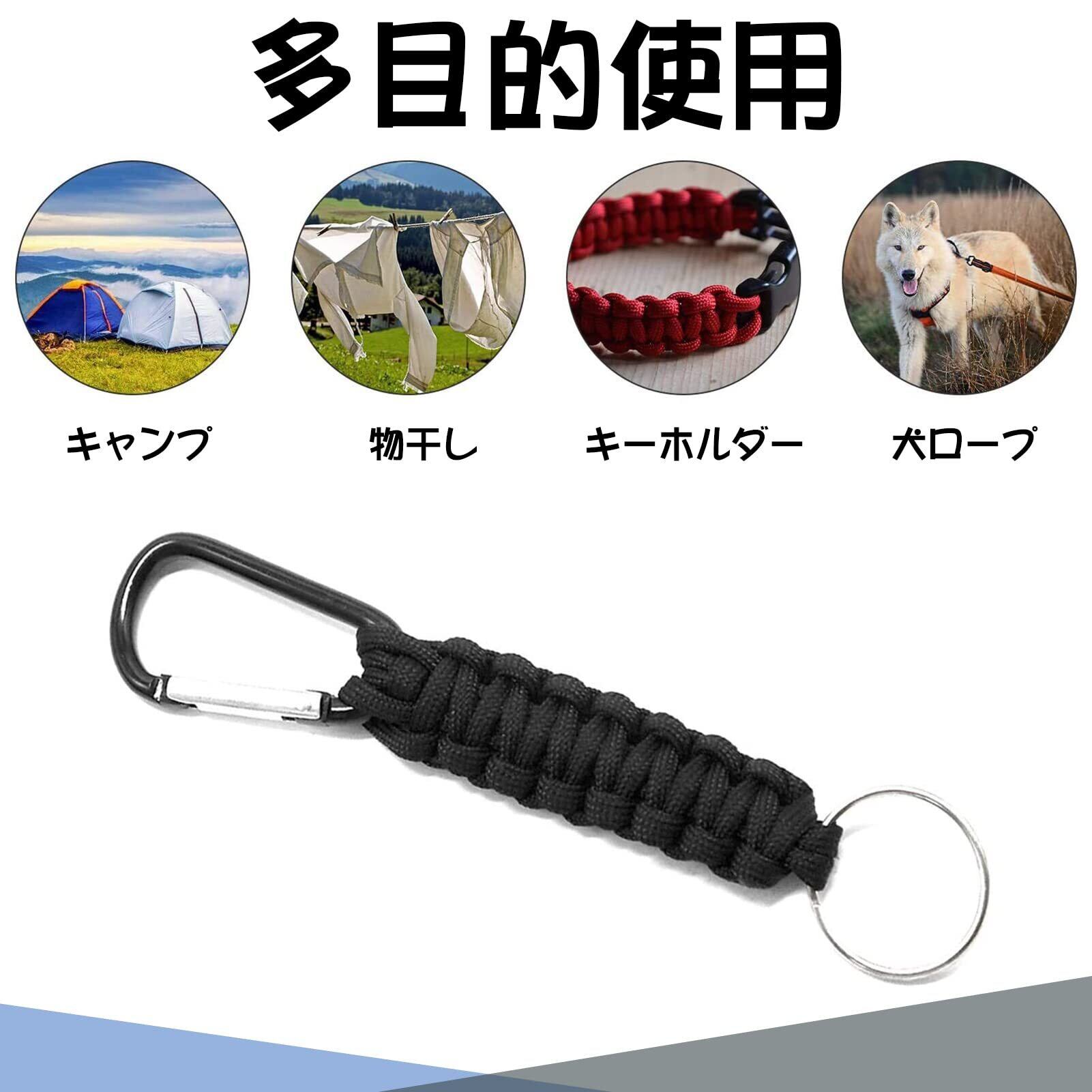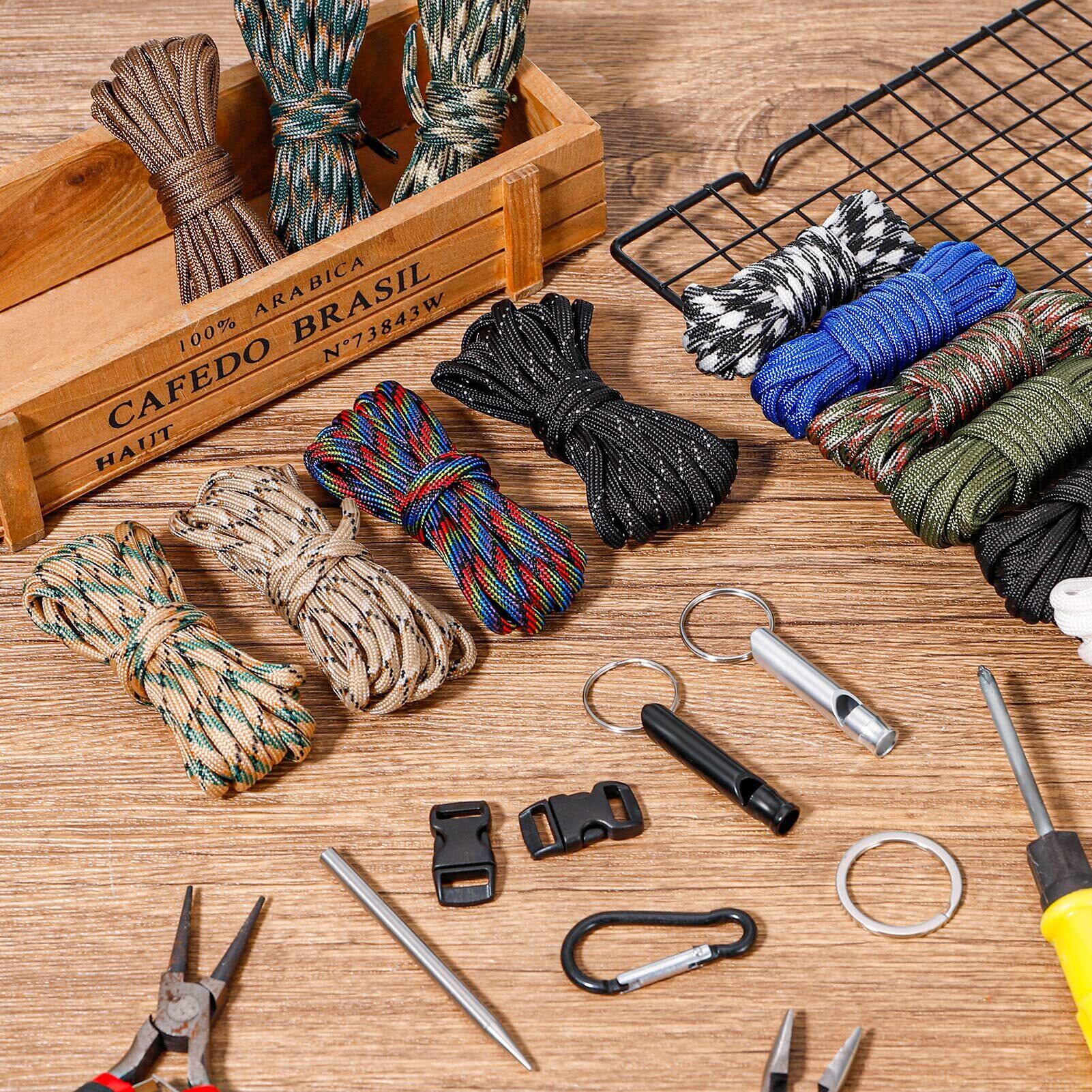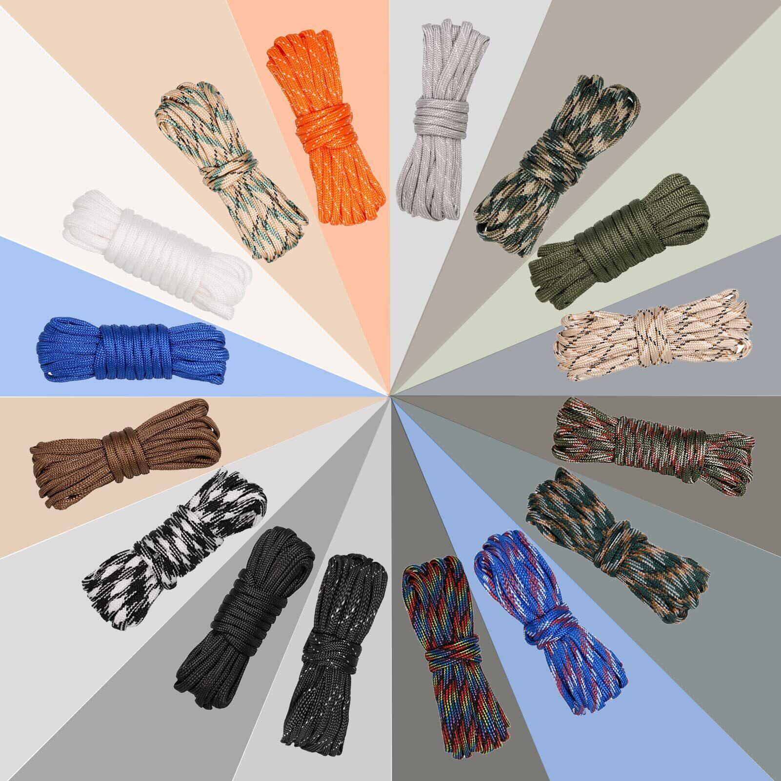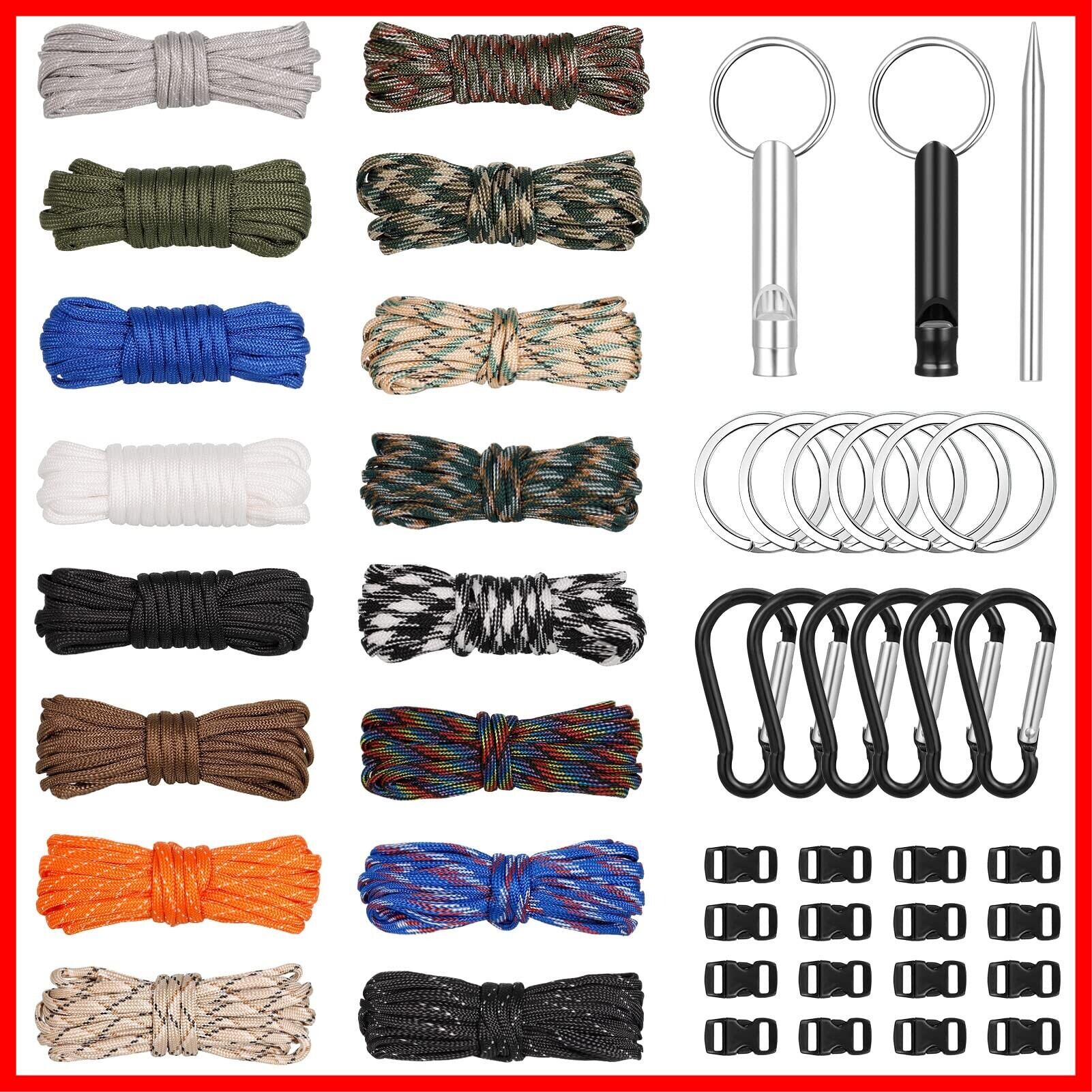 【セット内容】7芯4mm×3mロープ×16(16色)、ベルトバックル×16、キーホルダー×6、カラビナ×6、ホイッスル×2、編み針×1、素材:ポリエステル、ナイロン、耐荷重:約140-260kg本ロープは中に空洞ができないように、表地は若干タイトめに作られております。