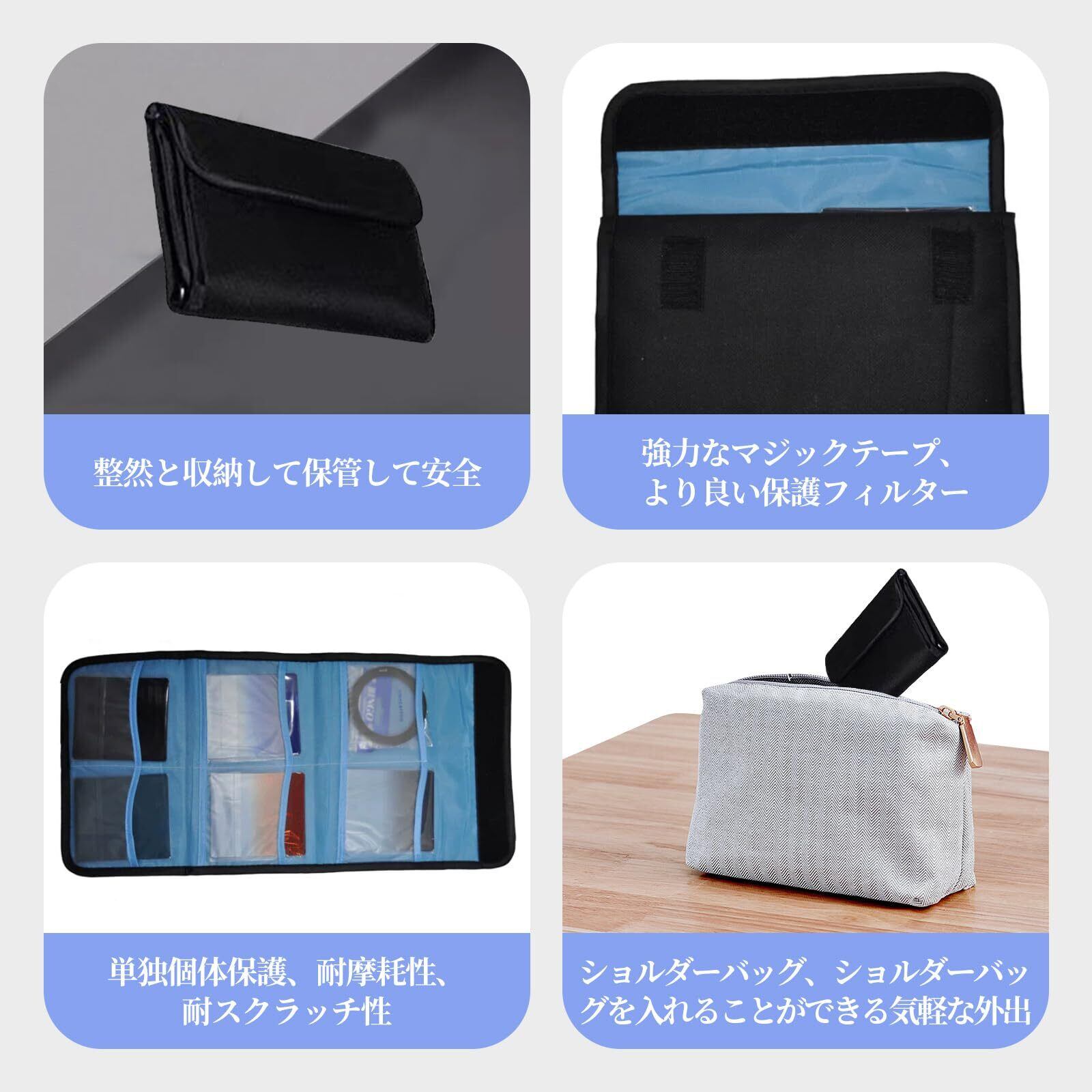 【軽量便利】:フィルターをフィルターバッグに入れた後、折りたたんで持ち運びに便利で、普段使い/撮影/旅行に最適! 内側の仕切りを簡単に洗浄することができます。
