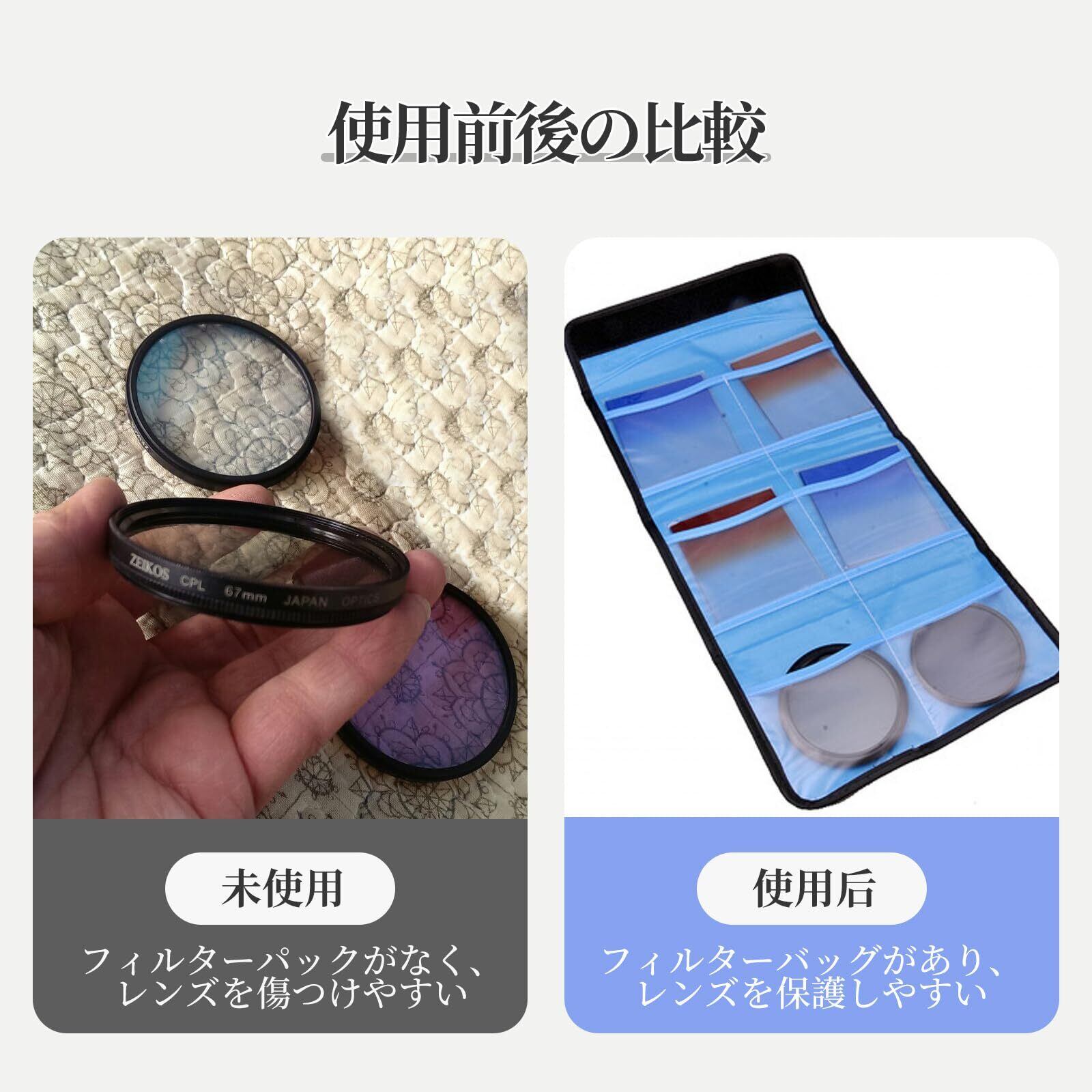 【良いデザイン】:当社のフィルターケースは外側は高品質のナイロン製で、縫製が良く、耐水性と防塵性があります。耐衝撃、柔らかくて柔軟性あります。良い技量、レンズを保護し、簡単な分類、簡単な使いやすいです。