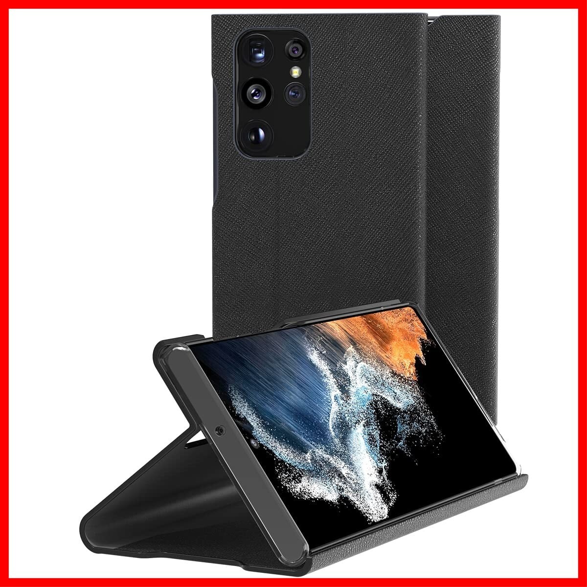 【製品仕様】… ◆ 対応機種 : Samsung GalaxyS22 Ultra ( サムスン ギャラクシーS22 ウルトラ ) ◆ 内容物 : ケース × 1個 ◆ サイズ : 約 16.8cm × 8.7cm × 1.7cm ◆ 重量 : 約 86g ◆ 素材 : PUレザー(合成皮革)、ポリカーボネイト ◆ 型番 : AE_GVLCSPLBS_BK