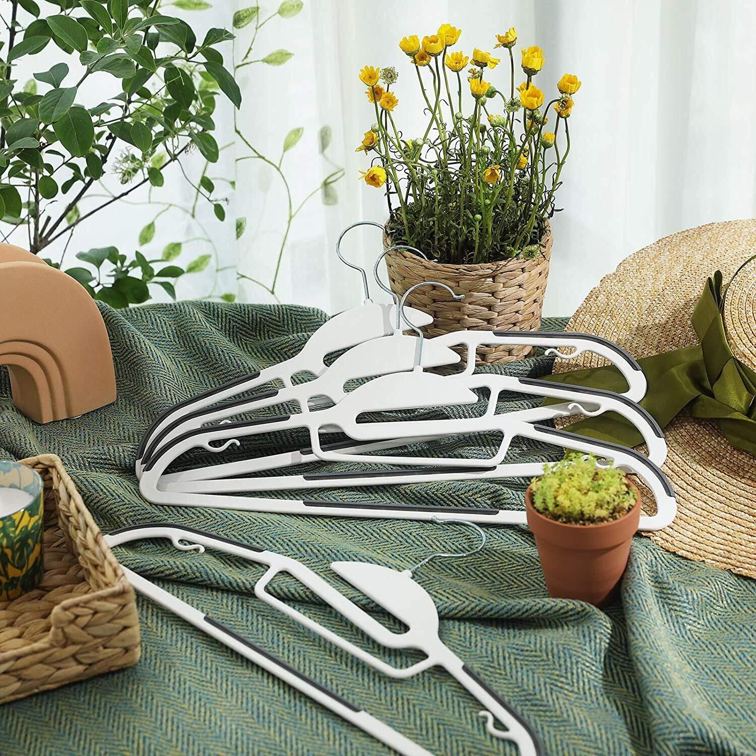 SONGMICS ハンガー 型崩れしない tシャツハンガー 洗濯ハンガー すべらない 襟を守る 20本セット 省スペース 跡がつかない スリム 多機能 360°回転 プラスチック CRP041WG02 | hananoki