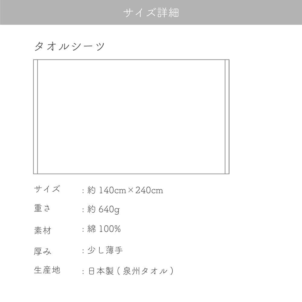 【シングルタオルシーツ1枚】生産地:日本製(泉州タオル) 本体重量:585g(1枚あたり) 本体サイズ:約140×240cm(1枚あたり) 素材 : 綿100%