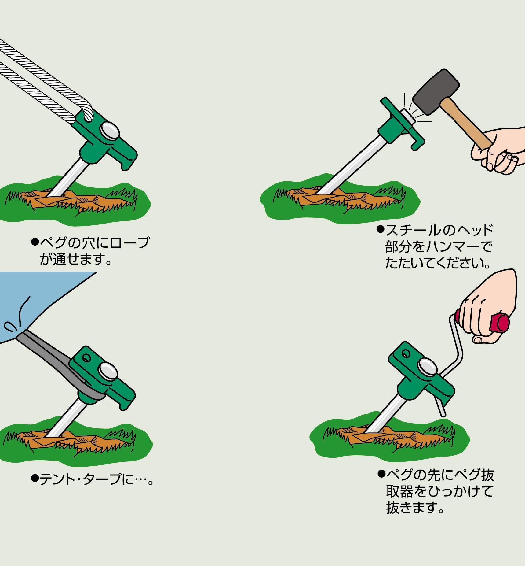 ペグの穴にロープが通せて便利。