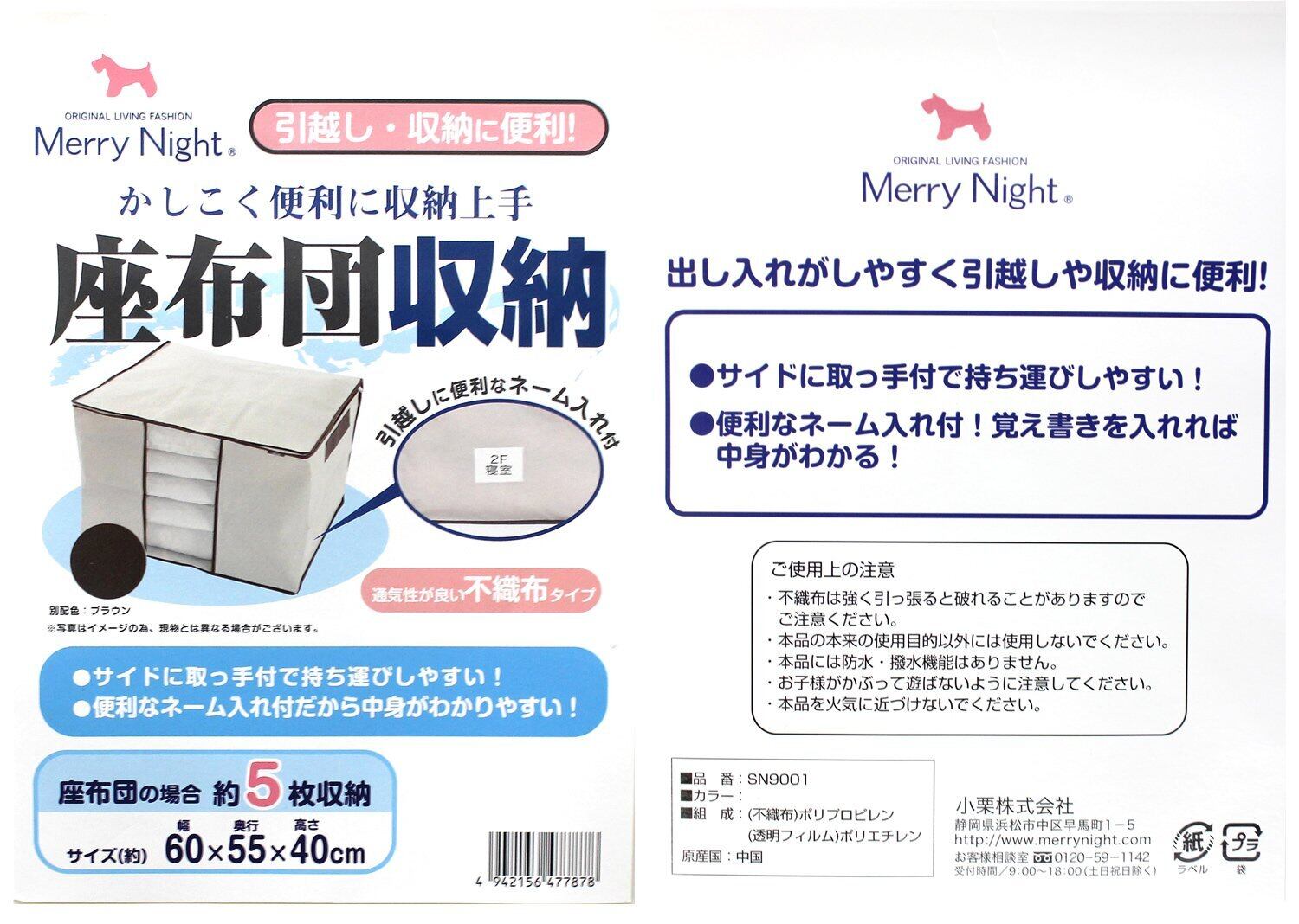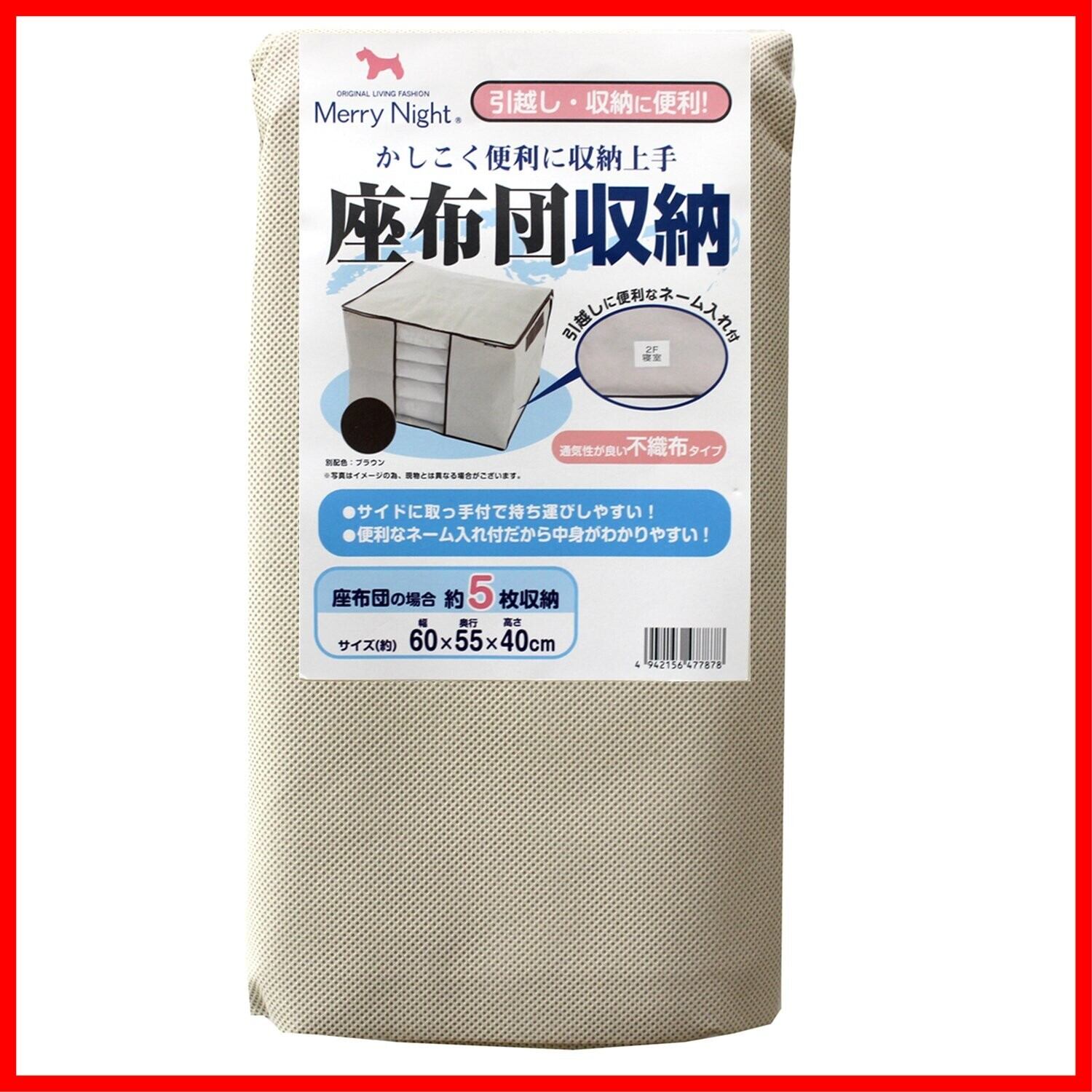メリーナイト(Merry Night) 座ぶとん収納ケース サイド取っ手付 (約5枚収納) ベージュ SN9001-96