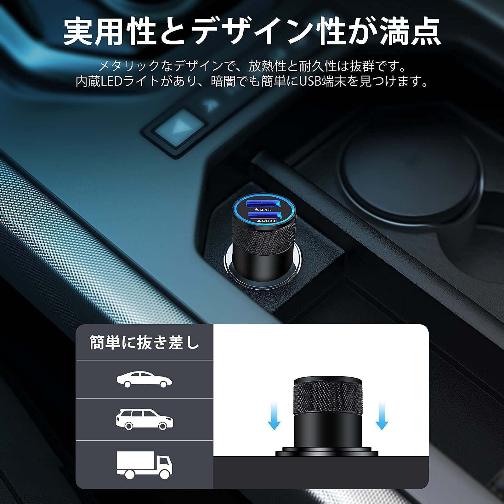 付属コンポーネント 2ポート車載充電器 QC3.0+2.4A USBカーチャージャー
