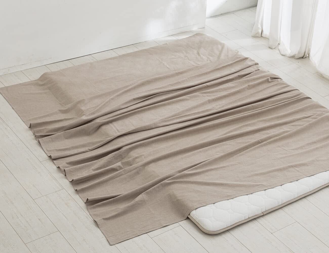 敷きシーツ シングル 150x250cm フラットシーツ ベッドシーツ オーガニックコットン アッパーシーツ 洗いざらしの綿100% 無地 ベージュ
