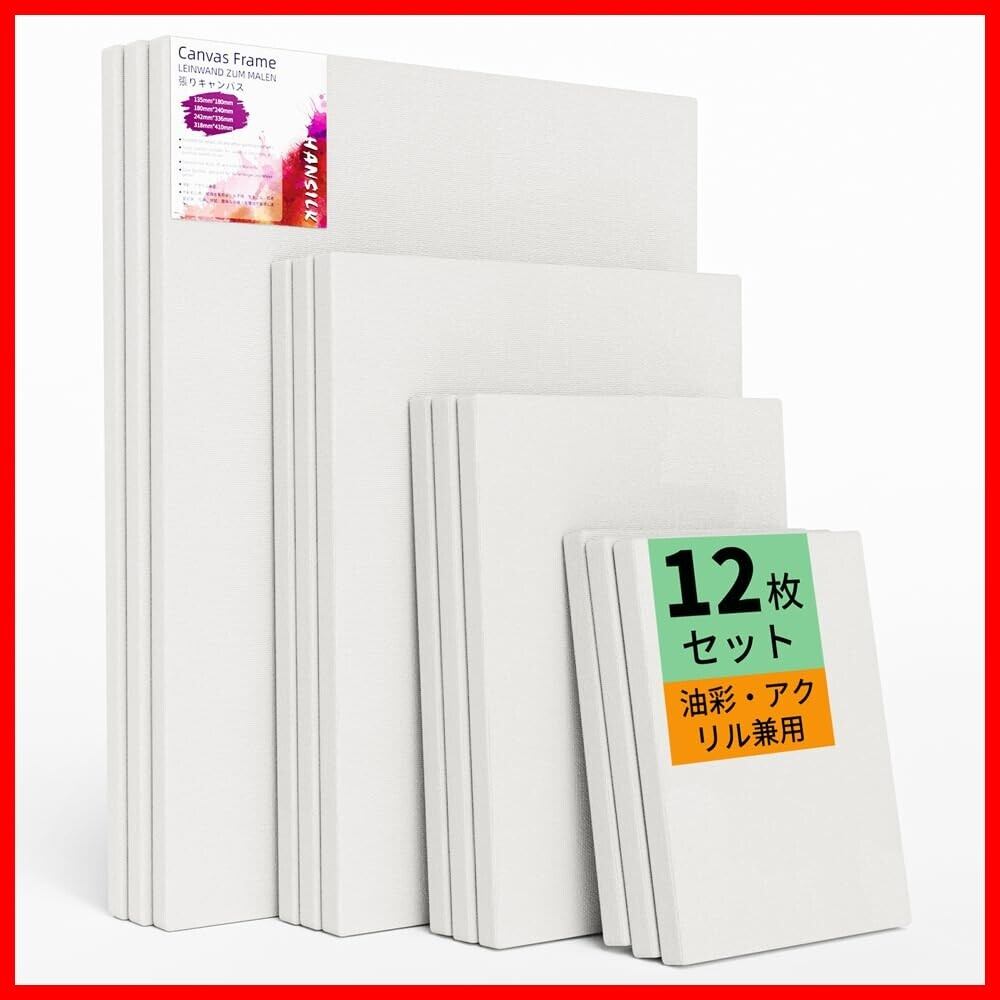 【12枚セット】 張りキャンバス 長方形 4サイズ各3枚 木枠 油絵キャンバス パネルボード 水彩画・油絵画・アクリル兼用 綿化繊 画材セット 厚手 オイル漏れ防止 壁に掛ける 部屋飾り アーティスト画布 | hananoki