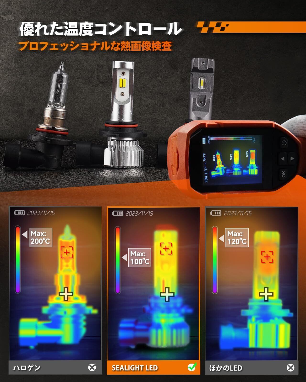 【50000時間長寿命信頼性テスト優れた熱伝導性 】 このLED電球は、6063のダイカストアルミニウムケースを採用し、内部には放熱板と20層の溝設計があり、十分な放熱効果を達成し、50000時間の寿命を実現しています。 プロフェッショナルな熱画像検査により、優れた温度制御機能を備えて、長期間の使用でも過熱の心配がありません。 さらに、ledバルブの耐久性と品質の高さを確認ため、エージングテスト、温熱テスト、暴力テストなど、さまざまなテストを実施して厳しい状況をシミュレーションしています。厳格な品質管理を行い、各製品には品質が付いています。また、長い寿命は環境にも優しいものであり、廃棄物の削減にも貢献します。