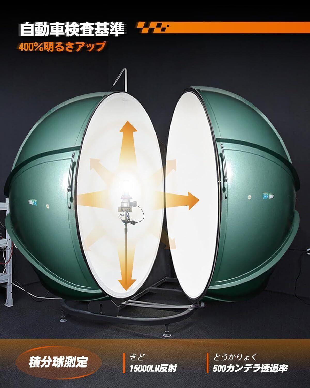 【15000LMの超強力な光量】この電球はなんと驚異的な明るさを持ち、最大15000ルーメンもの光を放ちます! CSP1860チップの最新技術を採用し、均一で隙間のない光を提供します。50ワットのパワーで、点灯不良や消灯、暗いエリアなどの問題も解決しています。 このLED電球の明るさは800%向上しており、積算球測定の反射光は自動車検査基準に合致する:15000ルーメンの反射、500カンデラの透過となっています。 これらの特徴により、豊かな光量と満足度の高い照明効果を実現し、 前方の道路や障害物をクリアに見ることができ、他のドライバーに対して自分の存在を際立たせることができ、夜間運転や悪天候下でも安全性を大幅に向上させることができます。