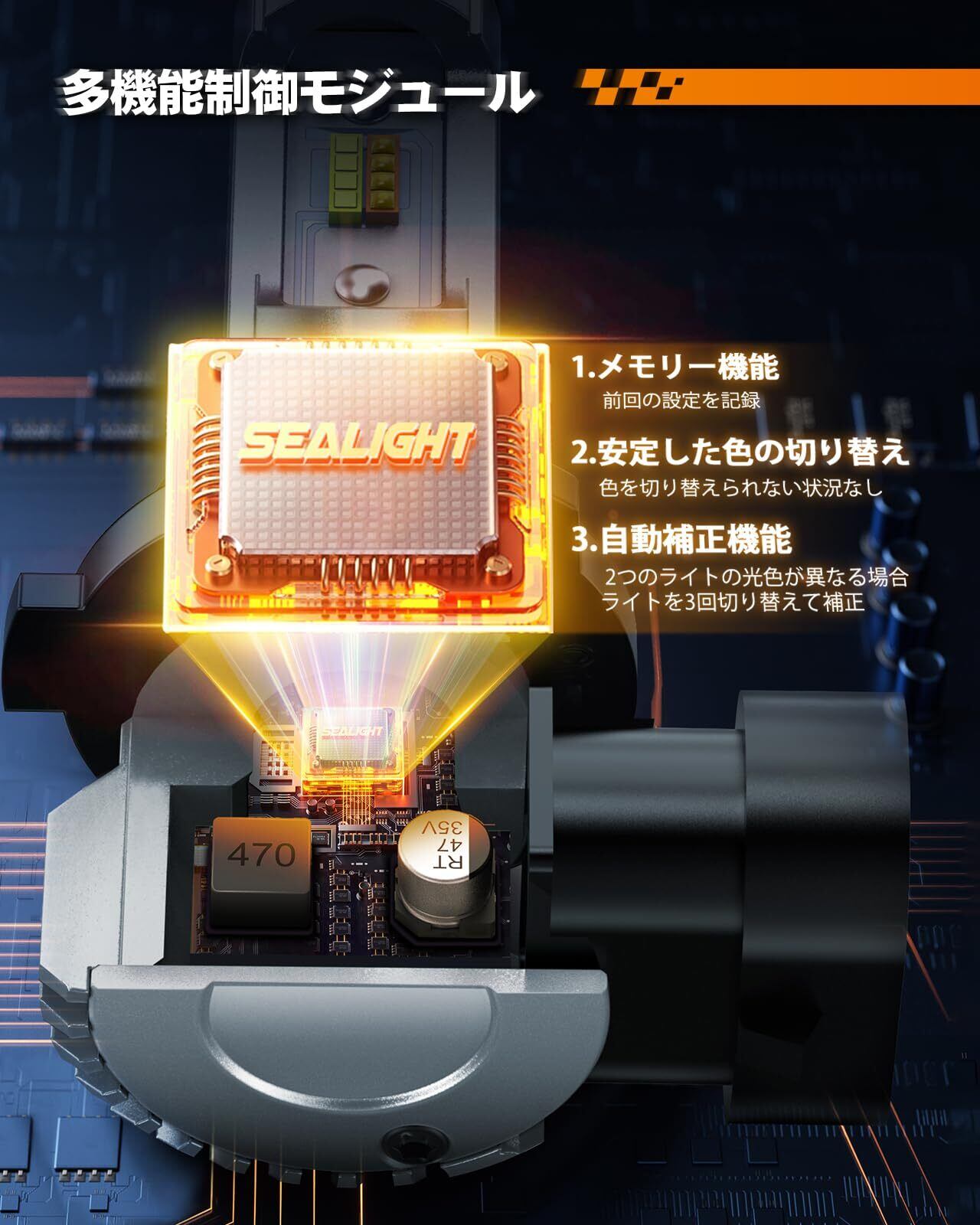 【2色切り替えメモリー機能自動補正機能】 このフォグには多機能制御モジュールが搭載されています。その中には、前回の消灯時の色からスタートするメモリー機能や、安定した色の切り替えを実現する機能もあります。 さらに、2つのライトの光色が異なる場合には、手動でライトを3回切り替えると、自動的に補正を行う、光の色を一致させることができます。 イエローとホワイトの2つのカラーモードを備えています。 イエローは悪天候下での使用に最適で、より強力な光の透過力を持っています。雨や霧の中でも、はっきりとした視界を確保し、安心して運転することができます。 ホワイトは晴れた日や通常のドライビングに最適で、ヘッドライトと一緒に道路を明るく照らします。