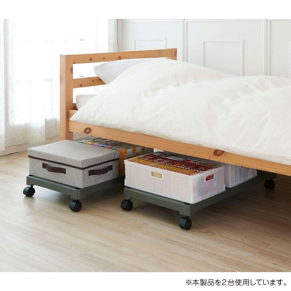 Belca 日本製 収納棚 押入れ収納キャリー 2台入り 幅37×奥行78×高さ10cm エコグリーン キャスター付き すのこ OUC-RG2T