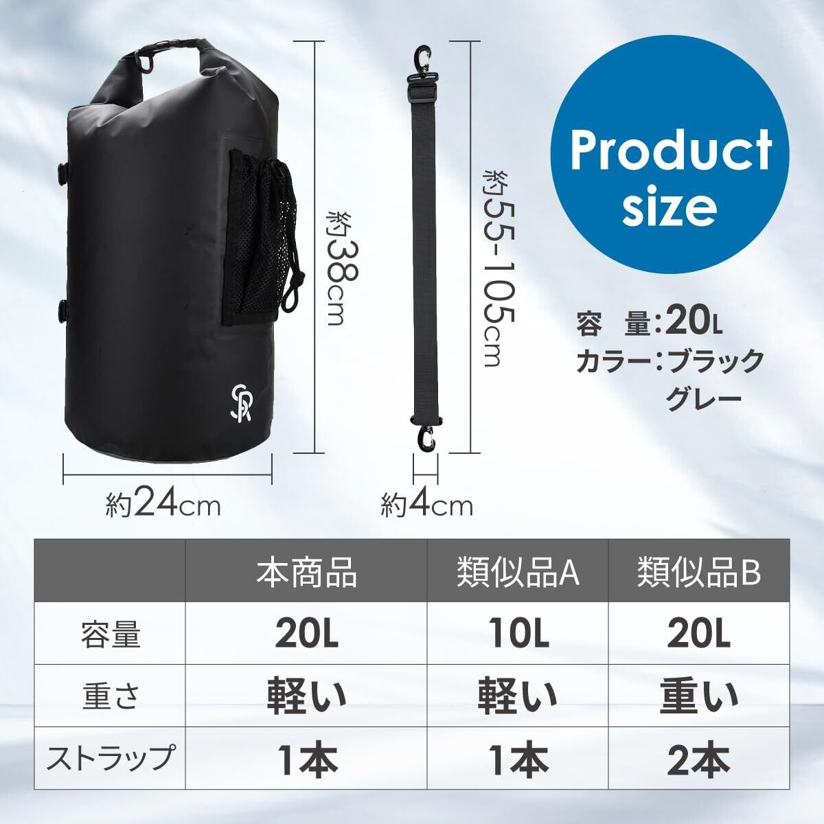防水バッグ スタッフバッグ ドライバッグ 20L 生活防水 レジャースポーツ アウトドア ショルダーベルト付き (ブラック) [並行輸入品]