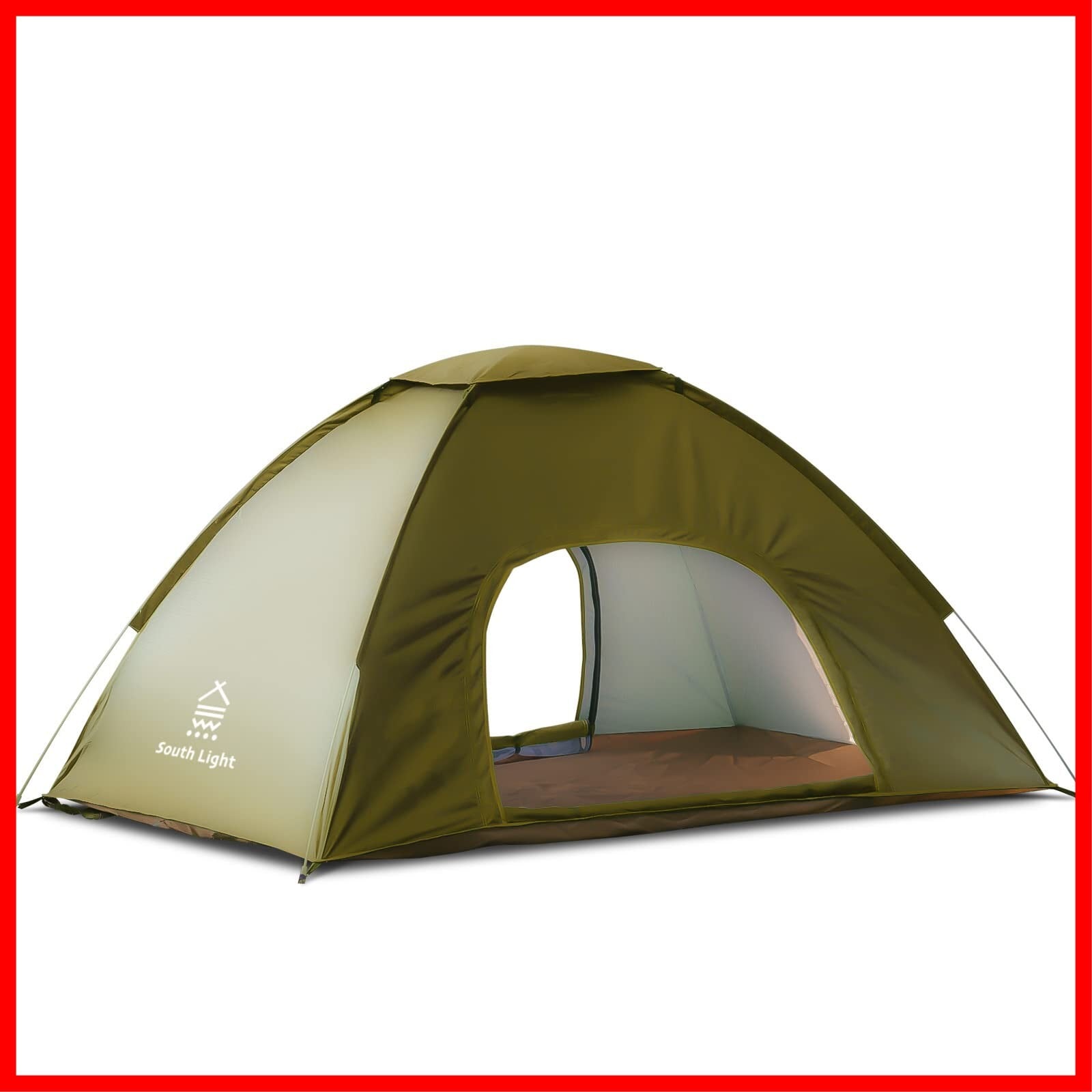 【ワイド2人用テント/防災テントとしても活躍】キャンプやレジャーなどで簡単、快適に使えるSouth Lightのホップアップテントです。収納キャリーバッグから取り出すとワンタッチで広がるホップアップ式。わずか約30秒で完成します。就寝2人用でも200㎝のワイド設計。フロントシートを広げれば、さらにゆったりの解放感、くつろぎを楽しめます。開閉用のフロントシート(扉)をファスナーで密閉すればフルクローズ仕様になり、着替えなどのプライバシー保護が図れて便利で、しかも安心です。非常時に防災テントとしても役に立ちます。