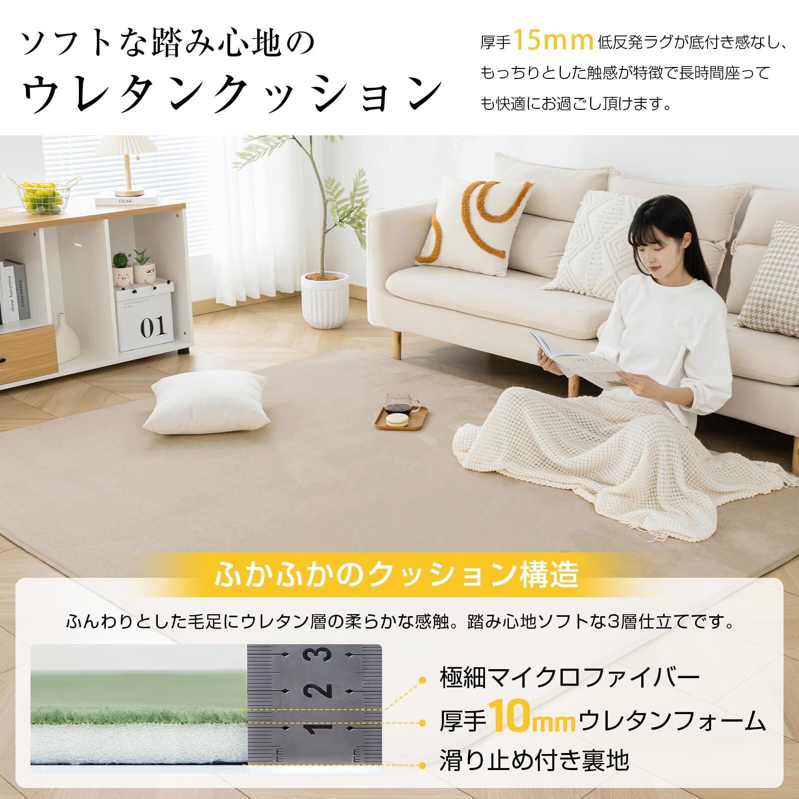 Keusnix ラグ カーペット 低反発 ラグマット 絨毯 1.5畳 滑り止め付 厚手 15mm 130x185cm リビングマット オールシーズン快適 ふわふわ肌触り 抗菌・防ダニ加工 こたつマット 床暖房・ホットカーペット対応 ベージュ | hananoki