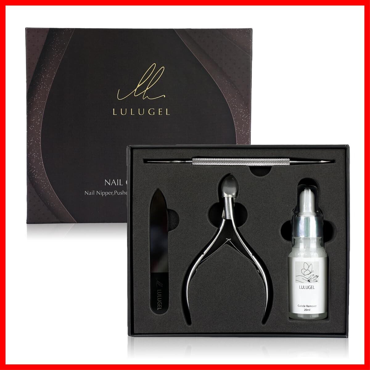 【LULUGEL甘皮処理セットDX】キューティクル・リムーバー20ml、甘皮 ニッパー、メタルプッシャー、爪やすり ガラスが付いた4点セット、ジェルネイル前の下処理をハイクオリティに実現可能、更にネイル休息時や、爪 ケア メンズにも人気のガラスヤスリで爪磨き ピカピカに爪ケアができます。保証もついて安心なネイルケアセットです。