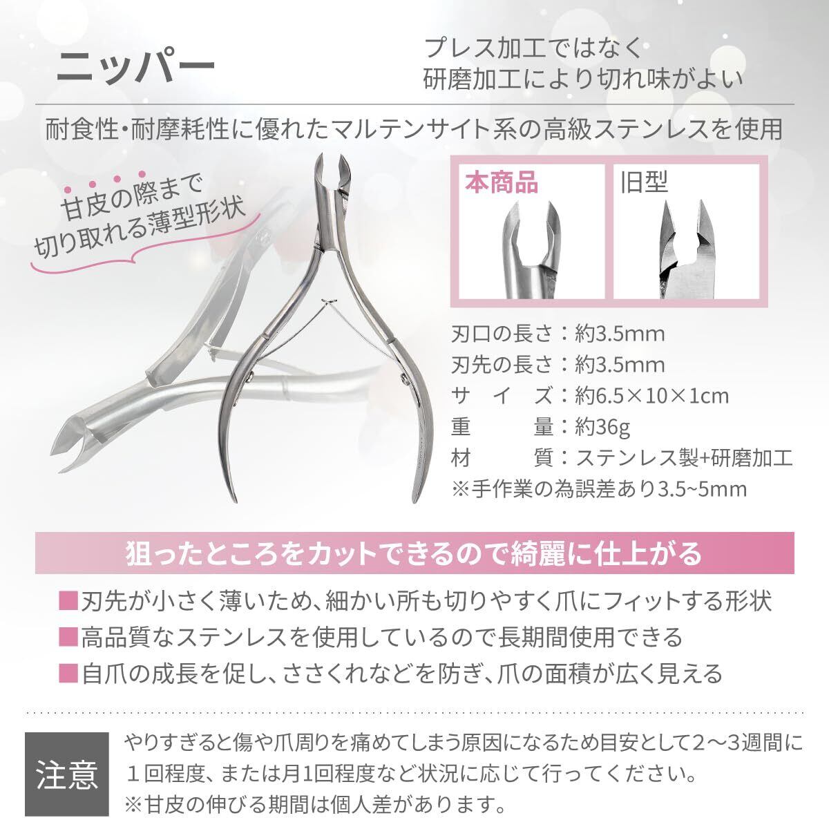 【キューティクルプッシャー】多くのネイリスト達の要望を叶えた形状となっており、かきだす、はぎとる、穿り出す、押し上げるなどの動作が繊細にできる特徴を持つネイル プッシャーです。キューティクルリムーバー(cuticle remover)を使わなくても極薄な構造になっているため甘皮を容易に押し上げることができる甘皮 プッシャーです。ネイル 甘皮処理、プッシャー ネイルはLULUGELにお任せください。