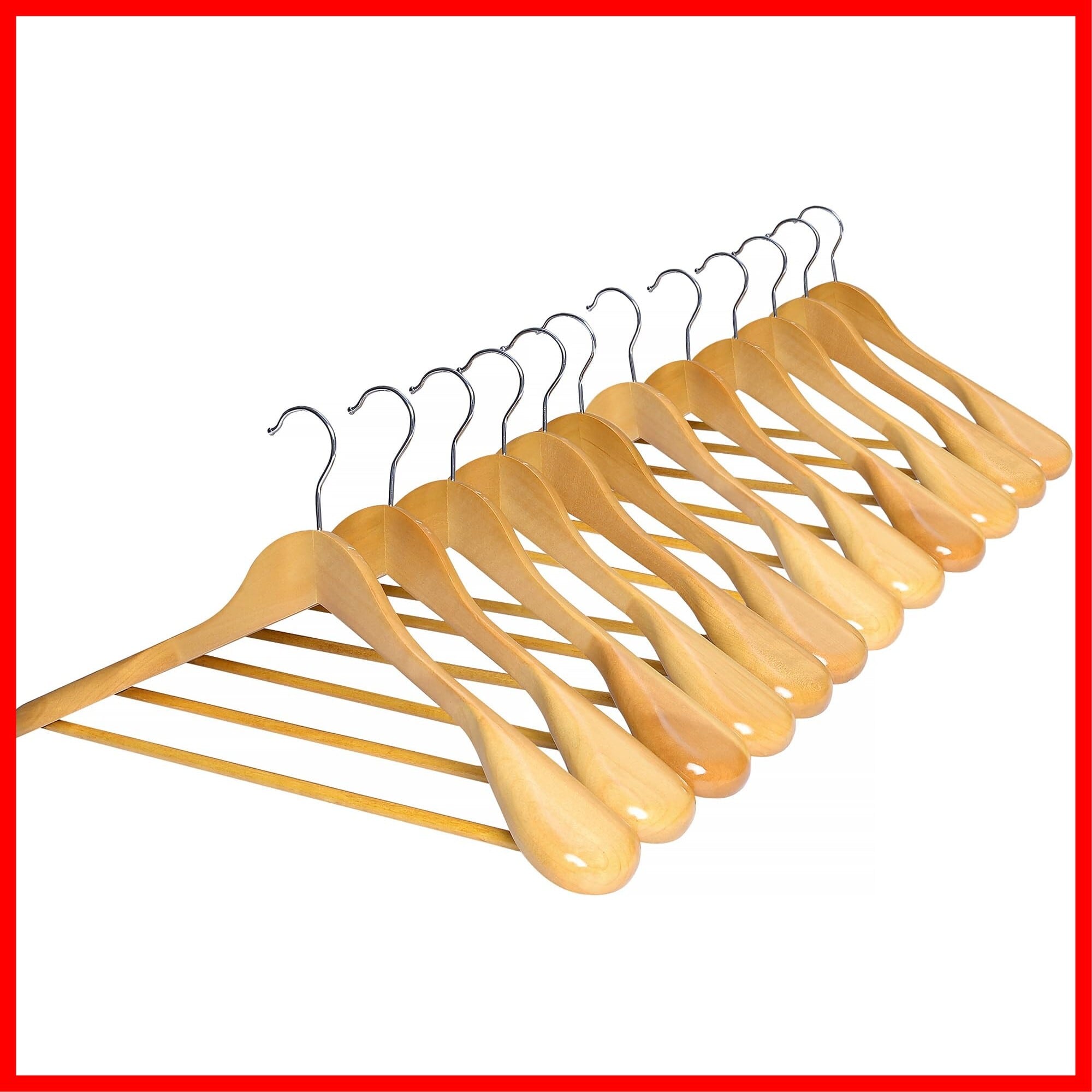 太陽の魚 ハンガー 木製ハンガー スーツハンガー フックは360度回転 両サイドのショルダー部分を5.5cm に広げ滑り止めとフィット感を高めました (ナチュラル, 12)