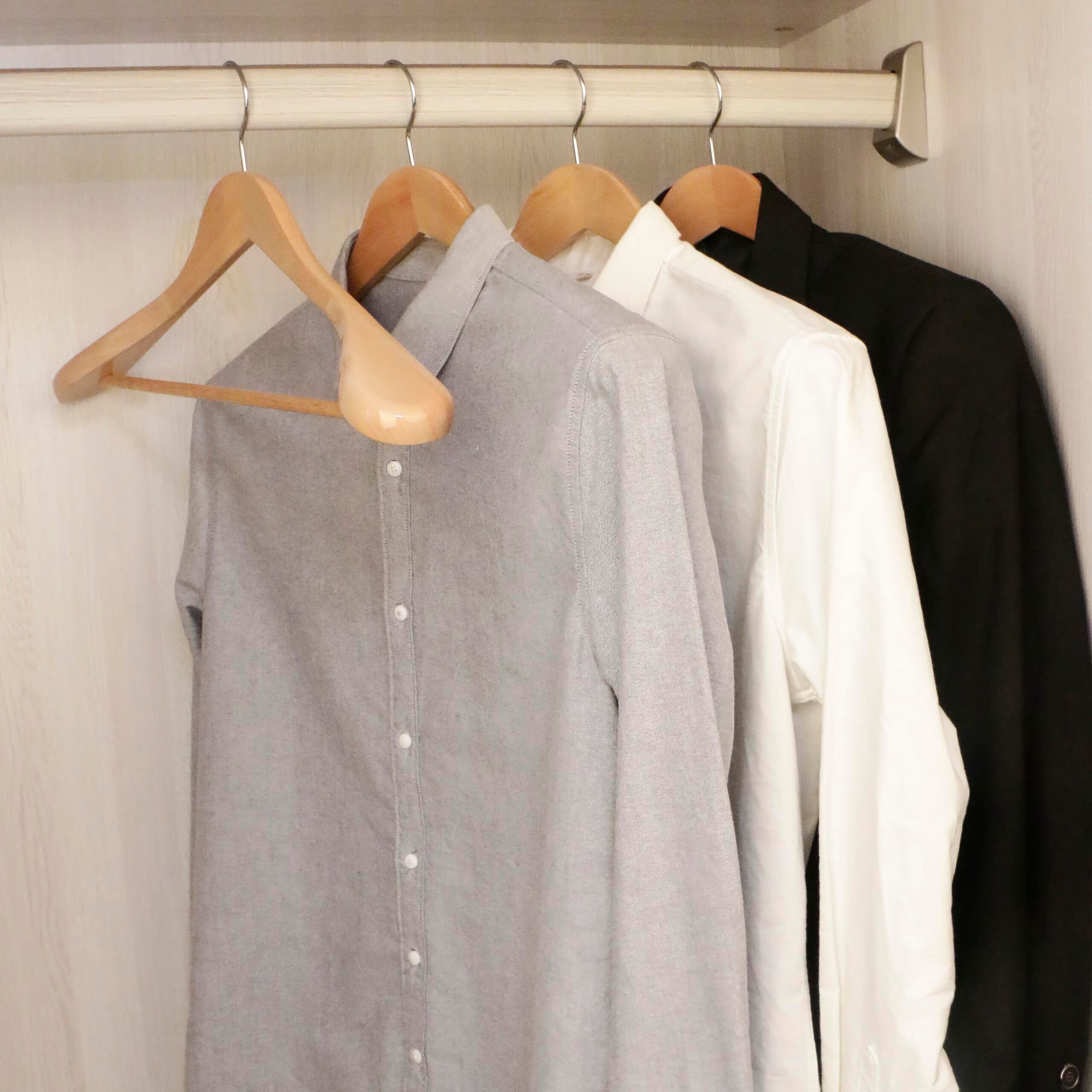 【滑り止め設計】ハンガーのカーブが衣類にぴったりフィットし、シワを防ぎます。 両サイドの肩幅を5.5cmに拡大し、シャツやスーツに最適です、下のレールはズボンを保持します。 各ハンガーはスーツを完璧に保管します。