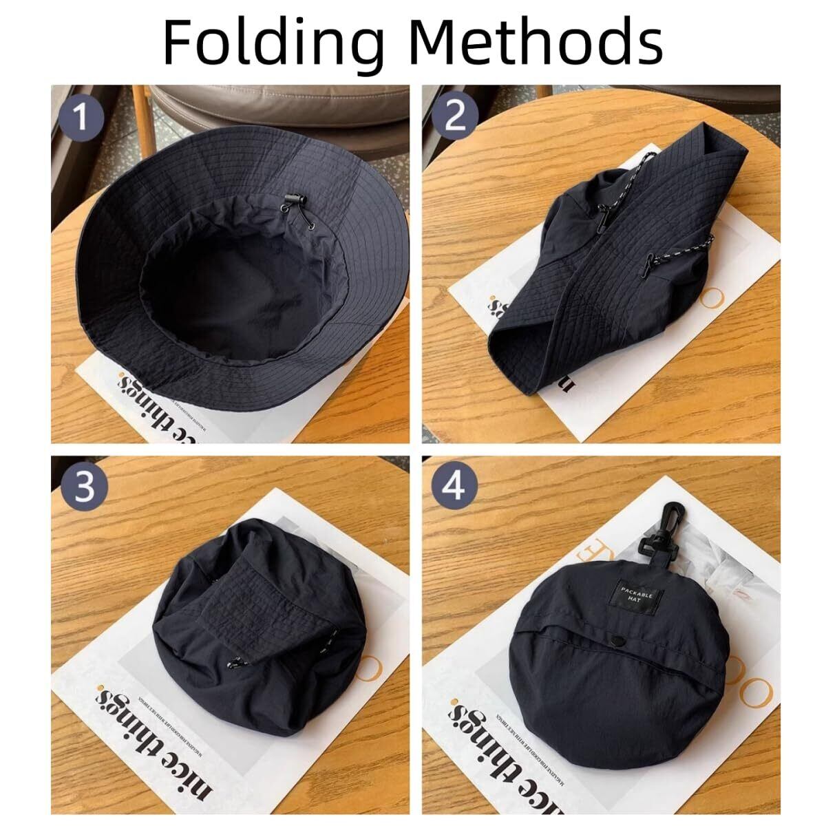 【折りたたみ収納一体のデザイン】 軽量で折りたたみ収納一体型のサファリハットが登場!折りたたんでひっくり返せば、直径約16 cmの丸いポッチに変身し、帽子にはフックが付いており、バッグに入れたりリュックやベルトなどに取り付けたりすることができ、ポーチを紛失することはありません。軽くてコンパクトで持ち運びに便利です。