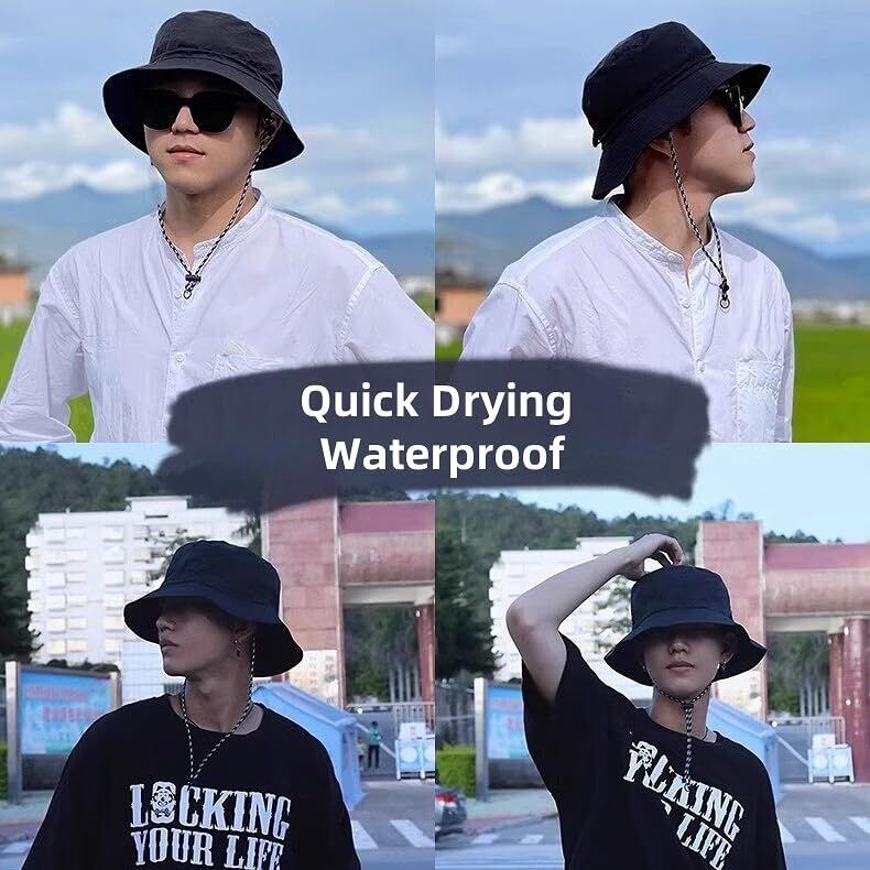 [RuiChy] サファリハット メンズ バケットハット 折りたたみ 収納一体 コンパクト UVカット帽子 紫外線対策 日焼け 防水 通気速乾 つば広 日除け 軽量 小顔効果 サイズ調整ひも 釣り アウトドア | hananoki