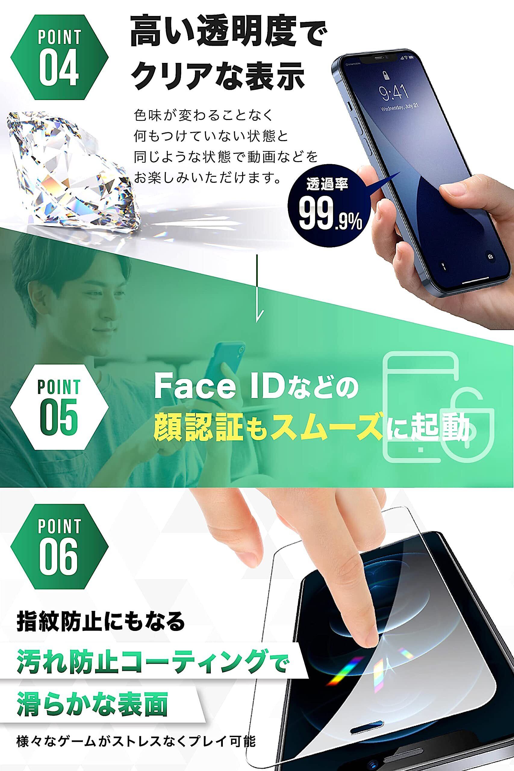 【 信頼度の高いジャパンクオリティ 日本製 旭硝子 採用 】 TEIQ の iPhone14プロマックス 用の ガラスフィルム は外国製の粗悪な ガラス ではなく、品質グレードAAAの『高品質』の日本メーカー 旭硝子製の 硬度 10H の 強化ガラスフィルム を採用しています。 透過率は『99.9%』と何もつけていない状態と間違うほどの透明感を実現。 さらに、指紋・汚れが付着しにくい 『 指紋防止 コーティング』を施し、滑らかな表面となっているので汚れから守りながらもより良い操作性を実現した 液晶保護フィルム です。