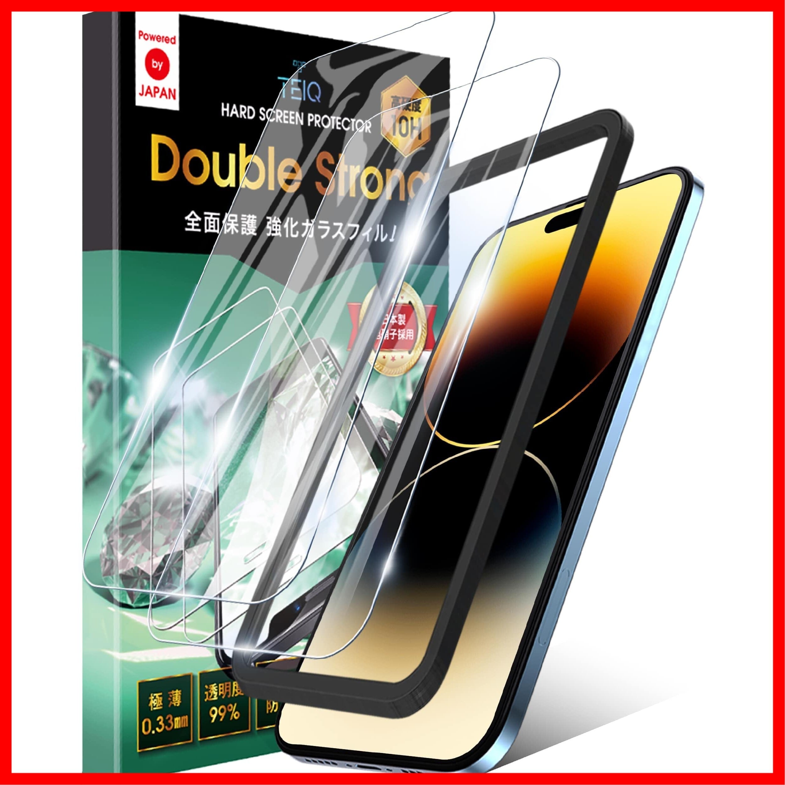 TEIQ 二重強化 ガラスフィルム iPhone14ProMax 硬度10H 日本製旭硝子 全面保護 強化ガラス フィルム ガイド枠付き 2枚セット iPhone 14 Pro Max 対応 GFDS-CLR-15