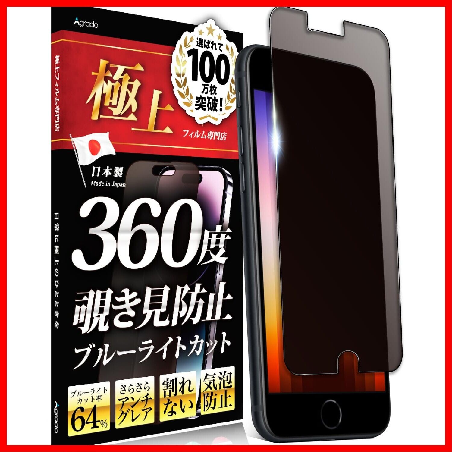 Agrado 360度 覗き見防止 フィルム iPhone SE SE3 SE2 第3世代 第2世代 用 アンチグレア さらさら マット素材 ブルーライトカット iPhone8 iPhone7 iPhone6 用