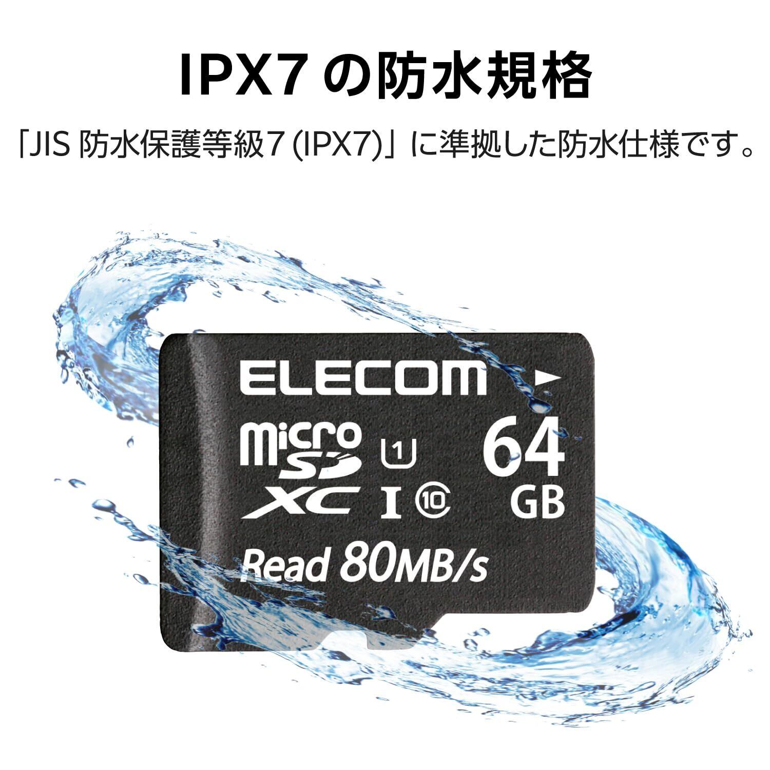 エレコム microSD 64GB マイクロSDカード UHS-1 U1 microSDXC IPX7 MF-AMS064GU11