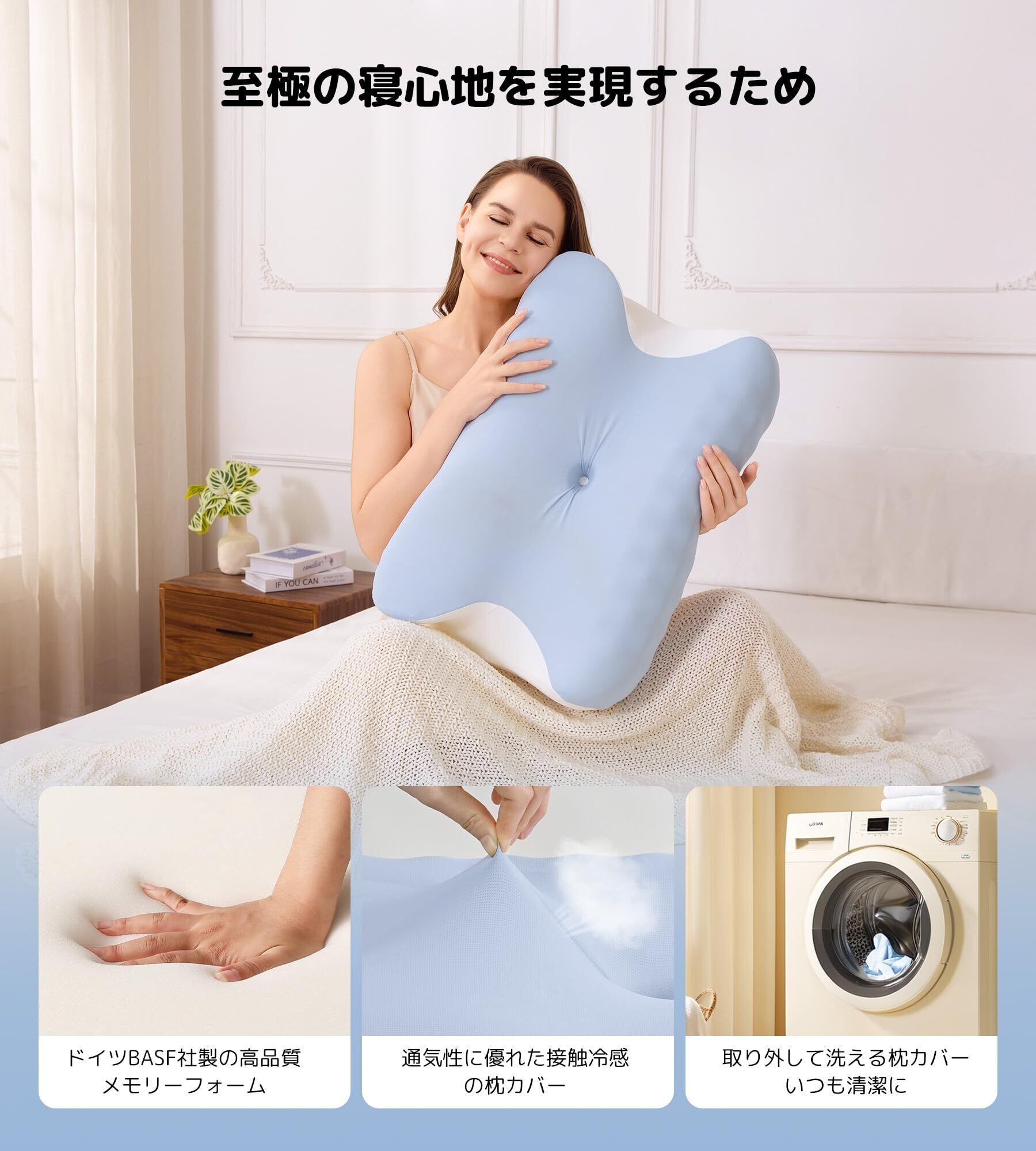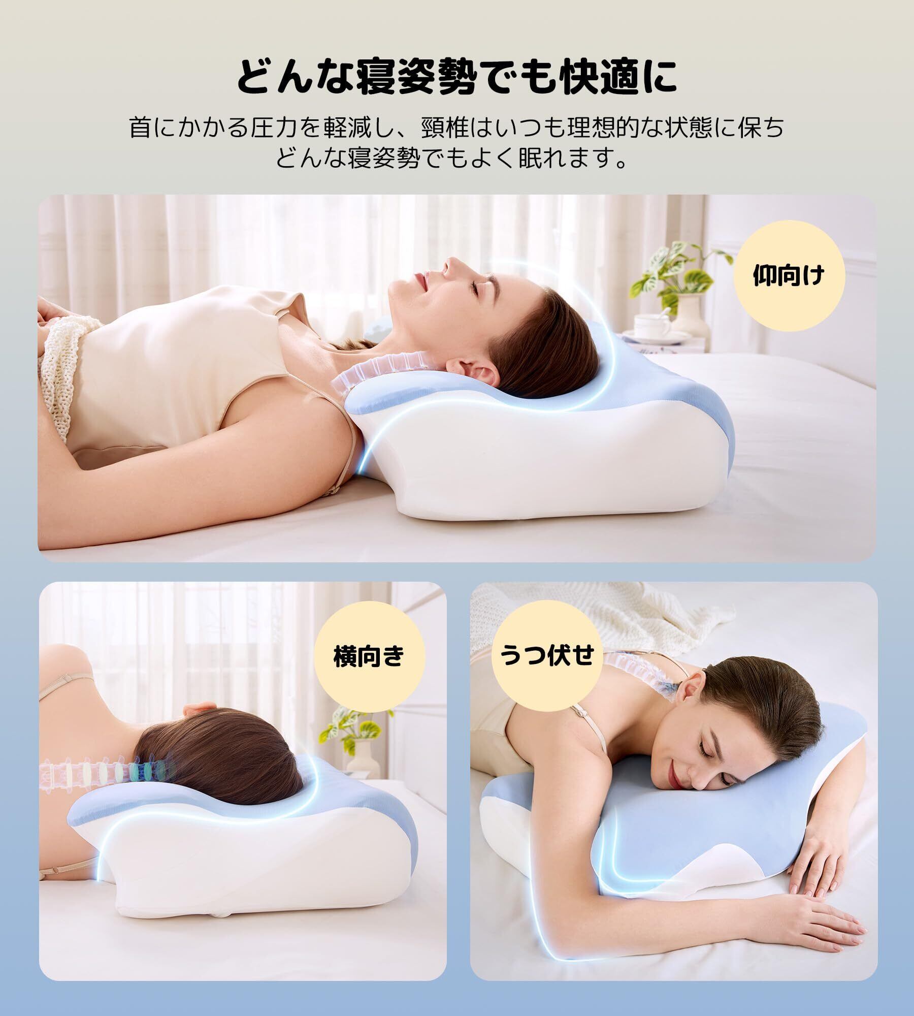 【呼吸が楽になり、朝までぐっすり】睡眠時に気道が狭まっていると、息苦しくなりやすく、深い眠りを妨げることがある。Pursay快眠枕は、体に合わせて使える高さ調整機能とあごが自然に上がる形状で、気道をしっかりと開き、呼吸が楽になり、よりリラックスした状態で眠れる。ご自身もご家族も、快適な眠りをお届け!