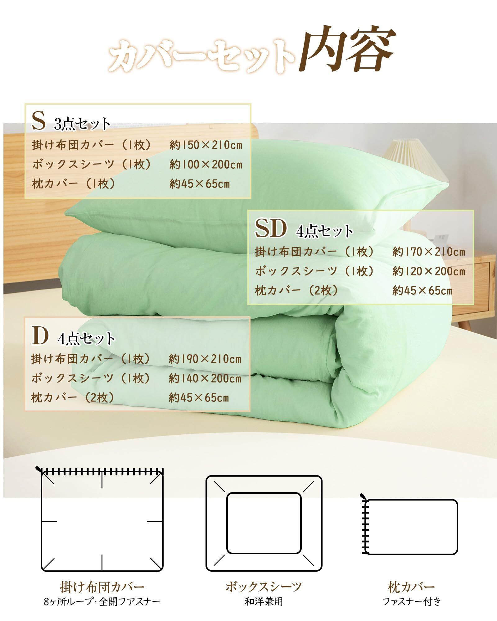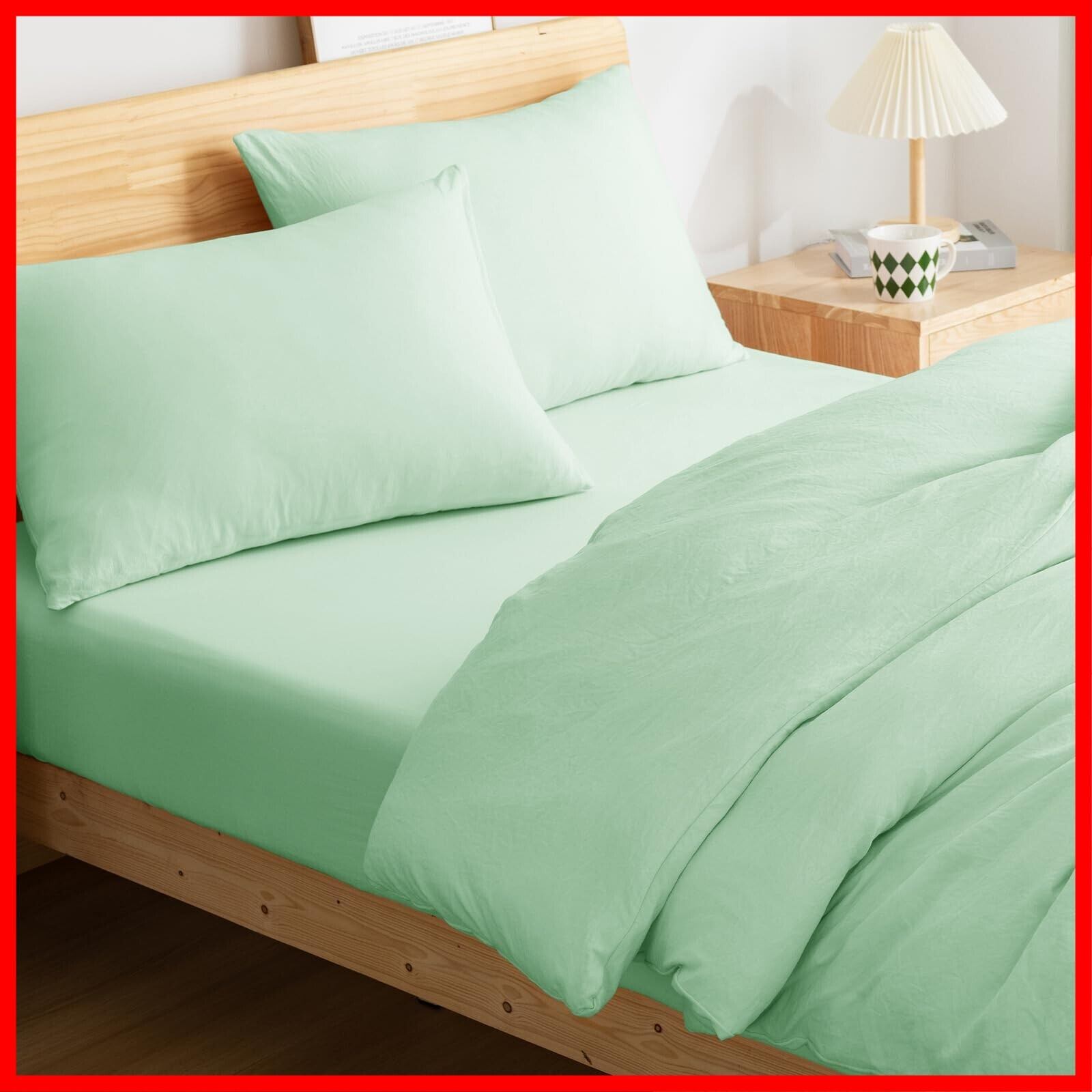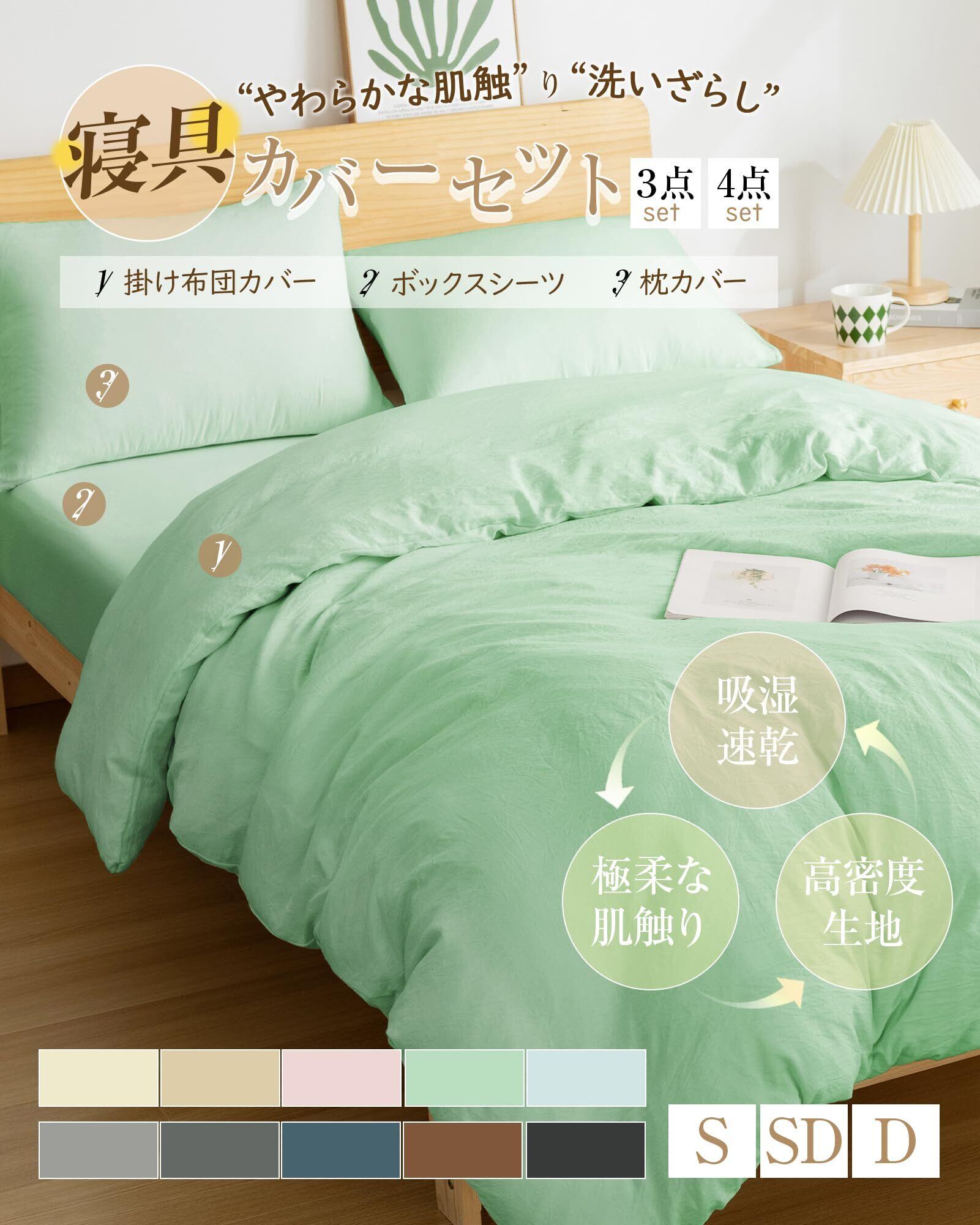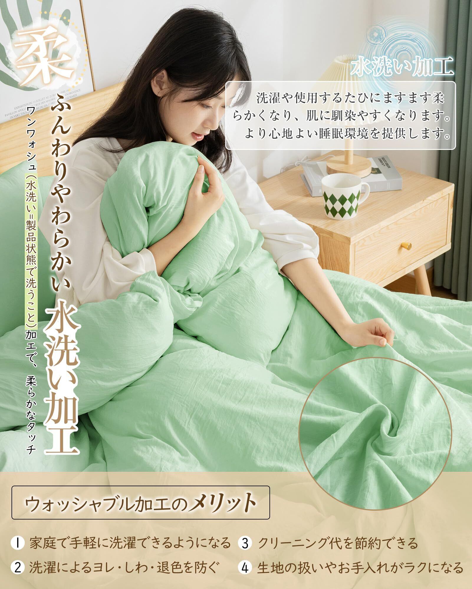 布団カバーセット セミダブル 寝具カバーセット【水洗い加工&超柔らかい】セミダブル 布団カバーセット セミダブルベットカバーセット 掛け布団カバー セミダブル シーツセット 洋式ベッド・和式布団兼用 ざらしシワ加工 水洗い やわらか 肌触り 吸水速乾 丸洗い 無地 シンプル オールシーズン(布団カバー セミダブル セットグリーン) | hananoki