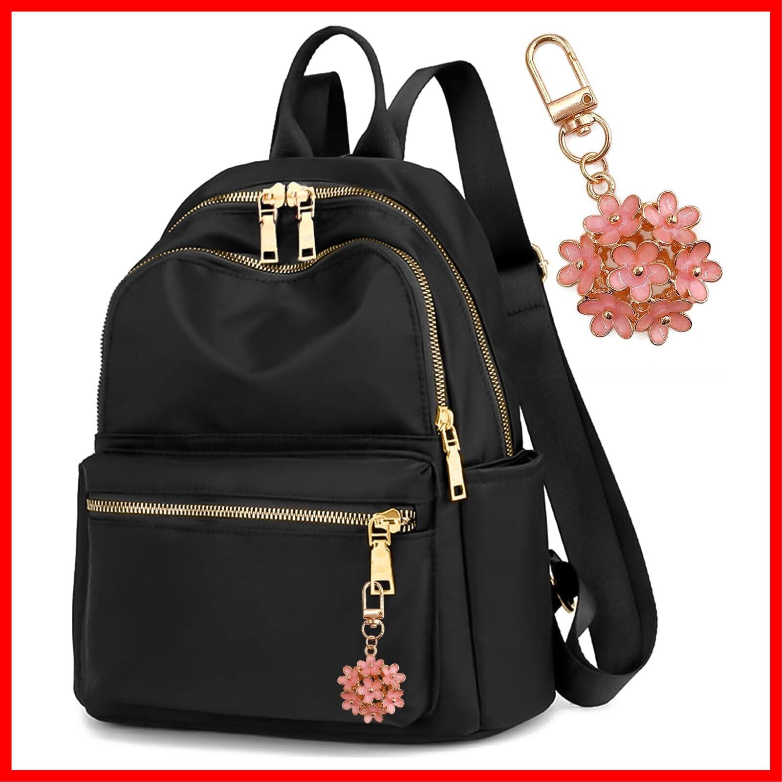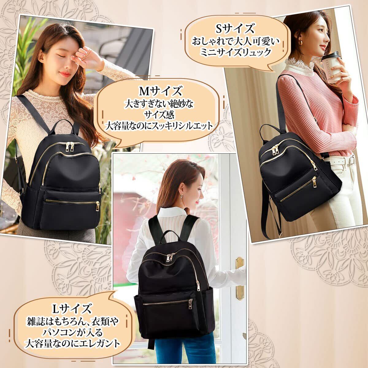 Lサイズはショルダーベルトを固定するダブルバックル仕様です。【おしゃれで機能性抜群のレディースリュック】シンプルデザインのリュックに、可愛いフラワーキーホルダーのアクセントが上品なレディースリュックサックです。高品質ナイロン素材採用で、耐久性があり丈夫で、撥水仕様のため日常の雨をしっかり防ぐことができます。また軽量なので一日背負っても疲れません。ゴールドの金具がアクセントとなったエレガントなバックパックです。カジュアルからきれいめまで幅広く活用でき、通勤・通学にもぴったりです。(フラワーキーホルダーはフロントポケットまたは背面ポケットに入っています)