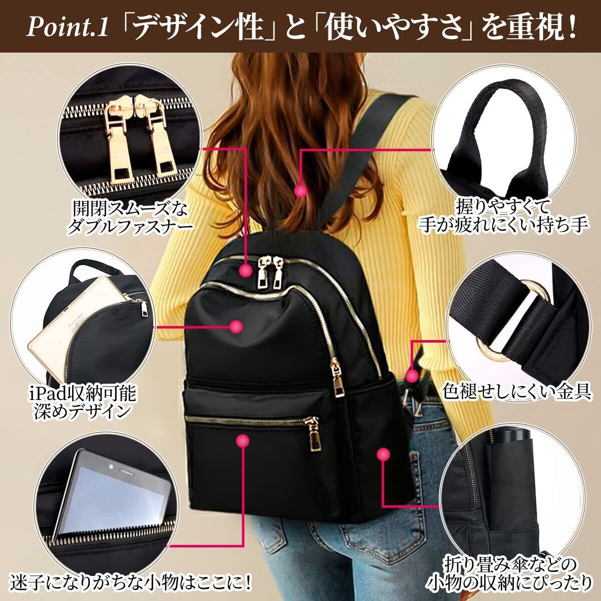 【あらゆる年代にフィットする上品なデザイン】ゴールドで統一したディテールが上品な雰囲気の大人可愛いリュックは、20代、30代、40代、50代のあらゆる年代の女性に選ばれています。