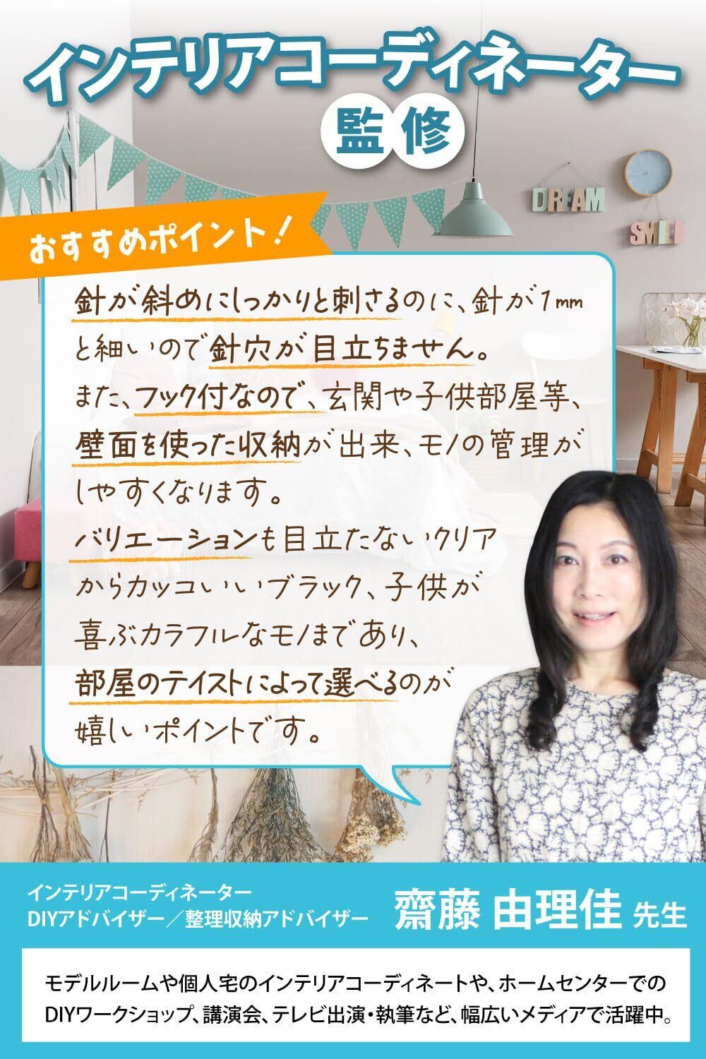 【目立たないクリアタイプ】クリアタイプの画鋲フックは高品質な透明プラスチックで作られており、様々な色の壁紙で違和感を感じることなくご使用いただけます。ブラックタイプは黒を基調とした壁紙や黒い物を飾る際にお勧めです。ミックスカラーは華やかに見せたい際にお勧めいたします。