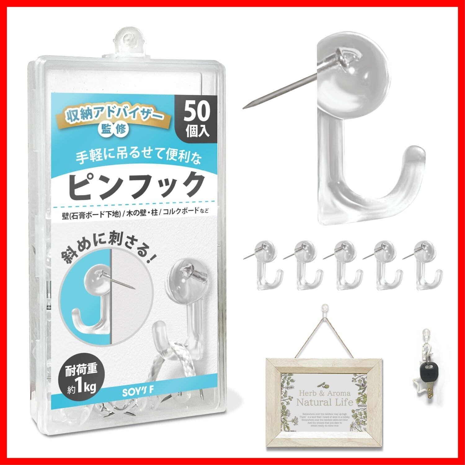 【インテリアコーディネーター監修】 SOY’S F 石膏ボード フック ピンフック 50個セット 壁掛けフック 画鋲 透明 目立たない 額縁 絵画 押しピン 壁 賃貸(クリア)