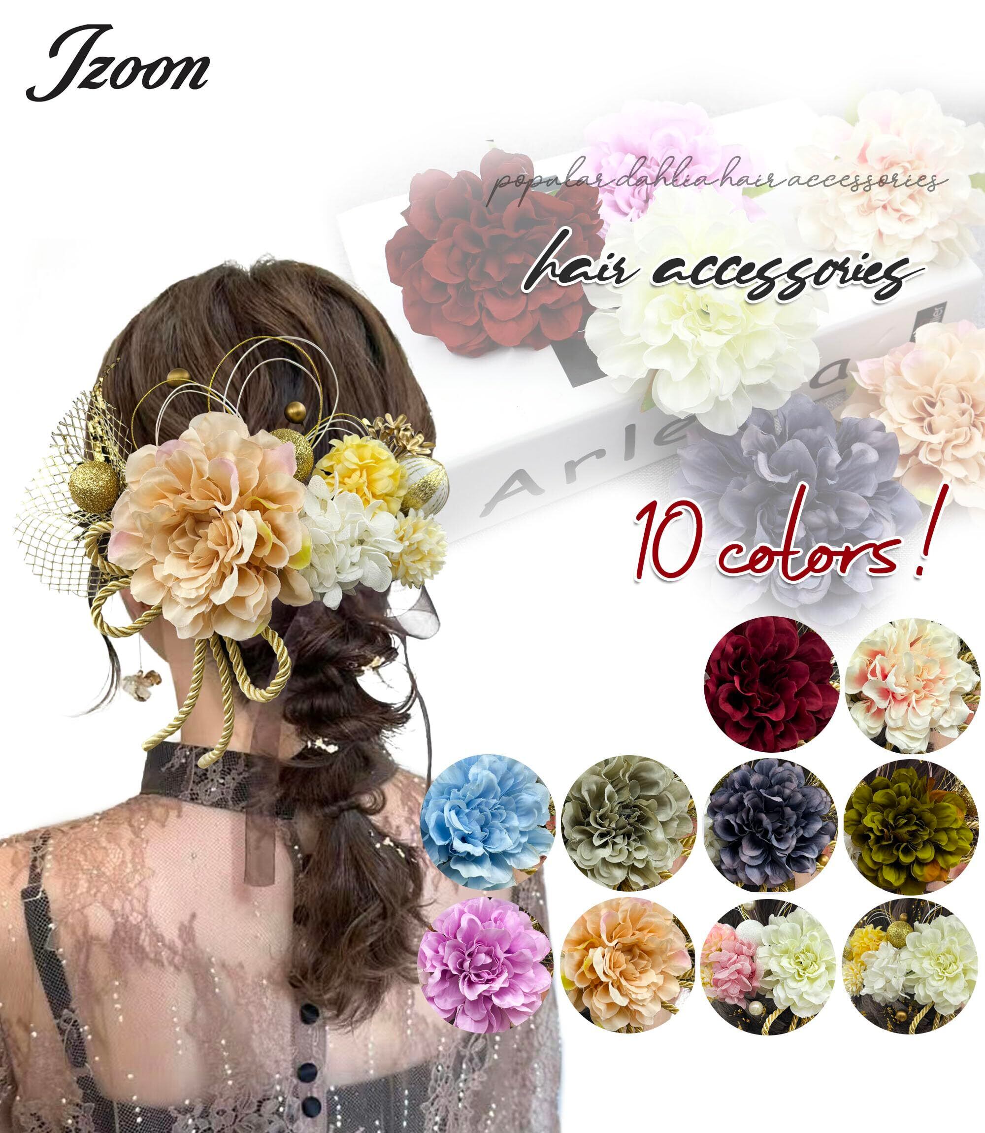 【優しいイメージ】厳選の天然素材を贅沢に使い、ポンポンと立体感のあるダリアを10色ご用意しております。ハレの日のお服や気分に合わせてご自由にお選びいただけます。どれもキレイな発色でヘアメイクに華を添え、優しい雰囲気になります。