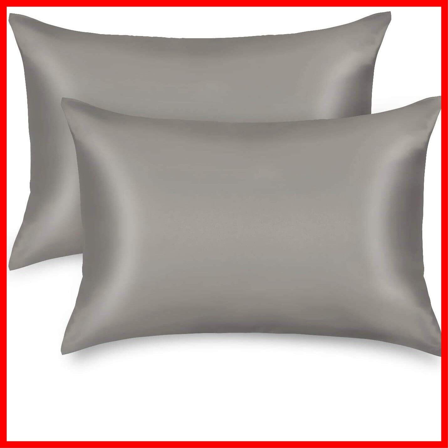 枕カバー 2枚セット サテンの枕カバー 封筒式ピローケース 美肌 美髪 両面シルクタイプ 滑らかな材質 静電気防止 (50*70, グレー)